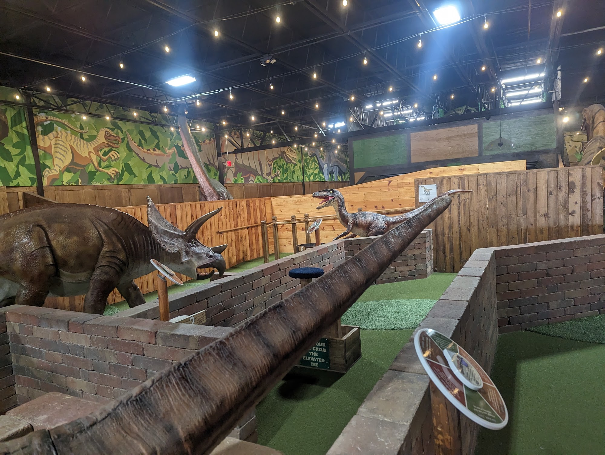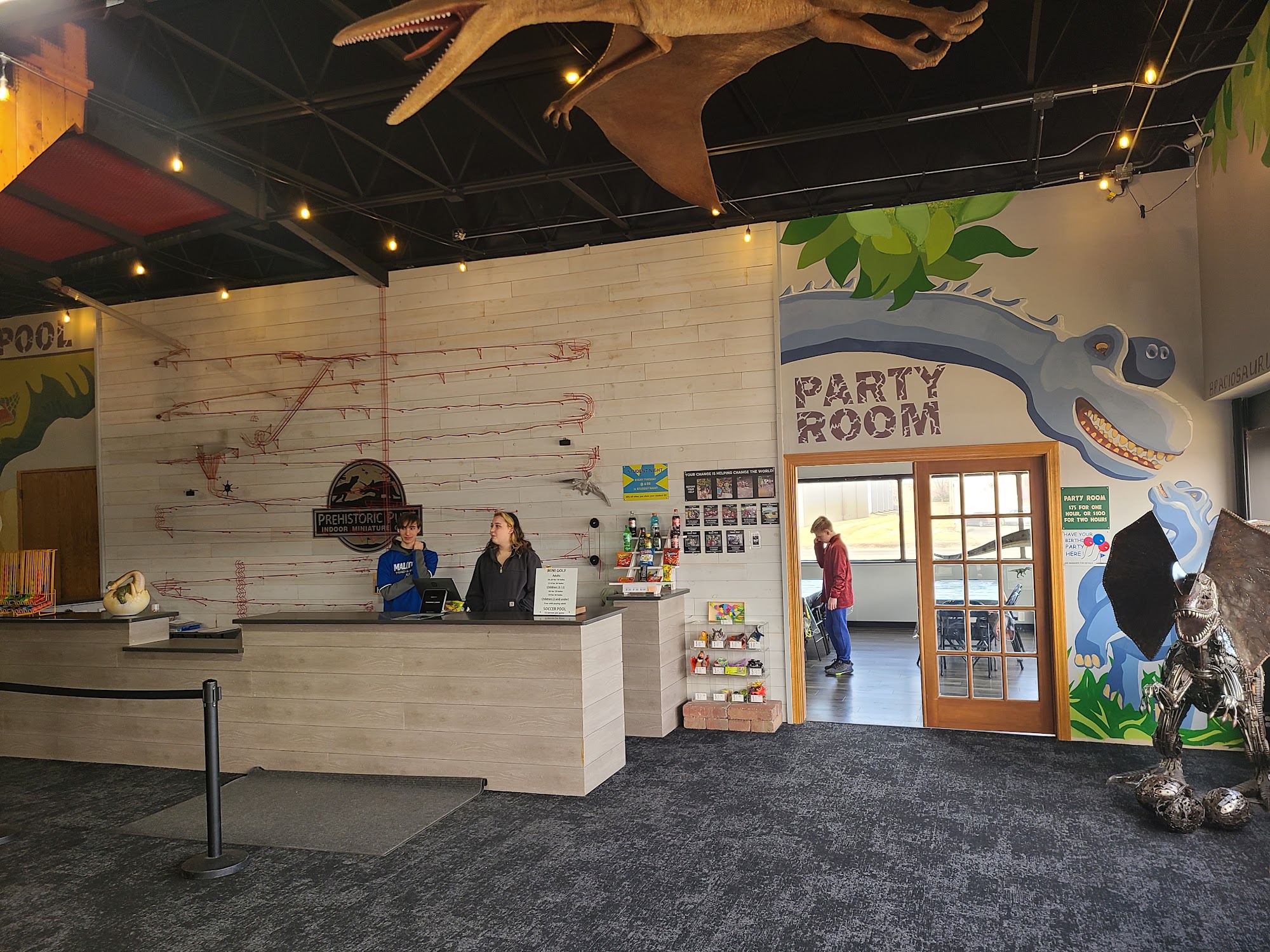 Prehistoric Putt offers a fun and exciting mini-golf experience suitable for all ages. With two separate courses featuring unique challenges like a zip line, slide, and a Foosball hole, visitors can enjoy creative ways to start each hole. The course is well-maintained and provides varying levels of difficulty, catering to different skill levels. Guests appreciate the friendly staff and the affordable price of nine dollars for 18 holes, making it a great outing that typically takes about an hour and a half. The venue also includes a spacious party room that can accommodate up to 50 people, complete with amenities like a microwave and refrigerator. Overall, Prehistoric Putt is highly recommended for families and parties, ensuring a fun time for everyone.