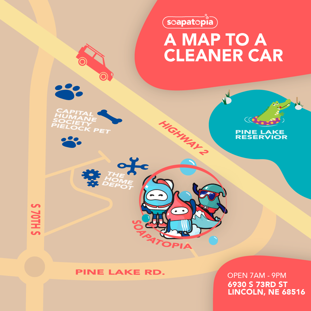 Soapatopia Car Wash is one of the best car washes in Lincoln with reasonable pricing and no pressure for a membership. The Fusion Powered Car Wash Tunnel does a great job, quickly removing bugs, grime, and dust. Employees are friendly and often provide a generous application of bug spray or pre-wash. Facilities include strong vacuums that work very well, air jet hoses for drying, and microfiber or cloth towels for wipe downs. The CERAMIC XTM layering process offers added protection for a longer lasting shine. Members can wash as often as they like. Some areas for improvement include the exit Go light, which can seem wonky and delayed, and the short hoses on the air jets that can't reach the rear of some vehicles. A mat washer is also requested. Overall, it provides an accessible, quality wash every time.