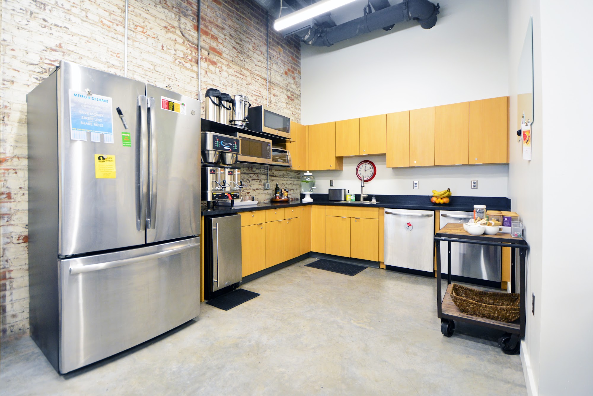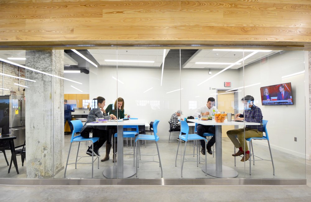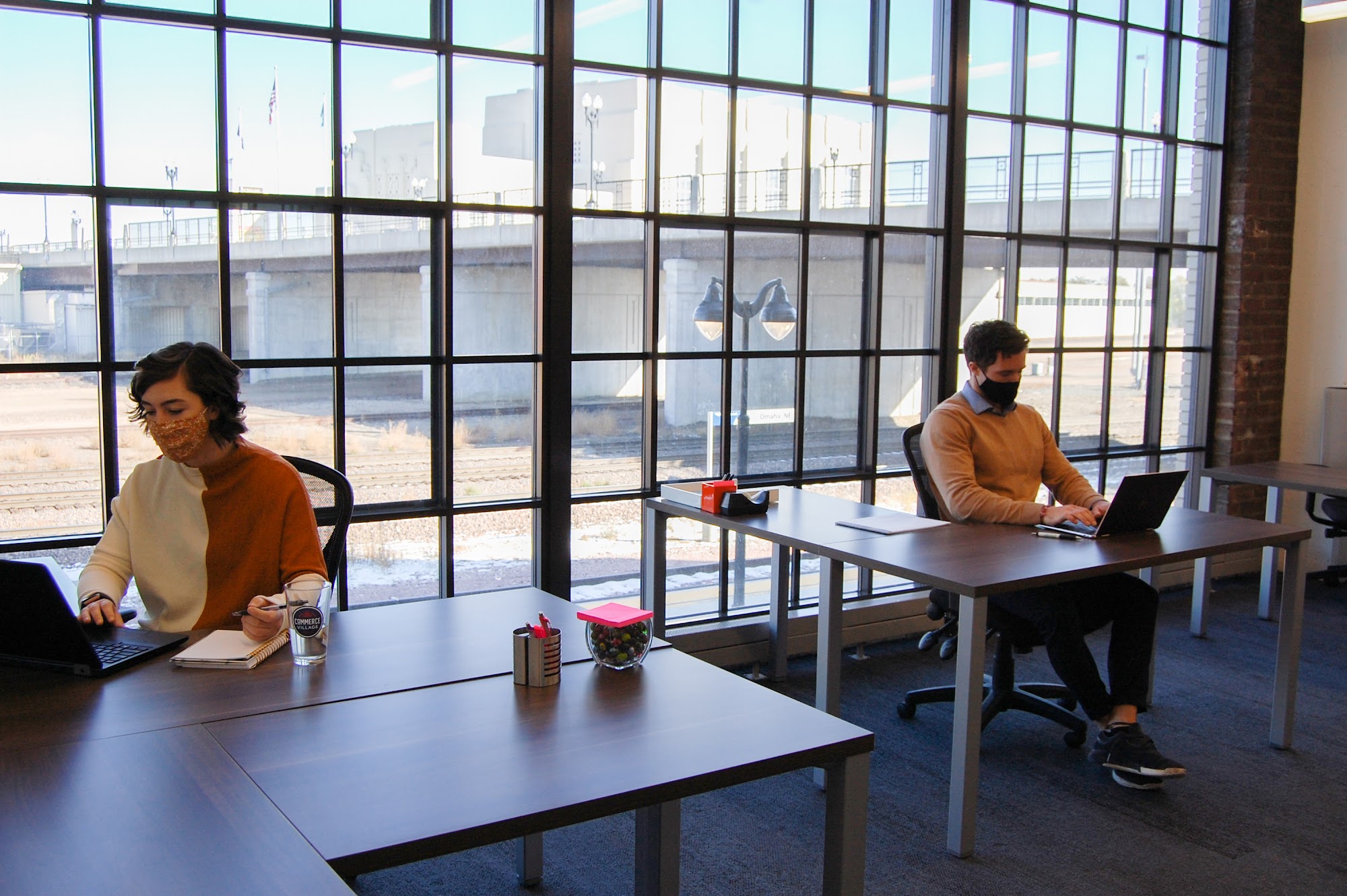 Commerce Village is a coworking community located in the historic Burlington Mail Terminal in Omaha's railroad district. It offers flexible work spaces such as desks, private office suites, and conference rooms, along with amenities like a 24/7 fitness center, private phone booths, free wifi, and unlimited coffee and tea. The space is filled with natural light and provides expansive views of downtown Omaha, including Union Station and high rises. Members can enjoy a large kitchen with a dining area, showers, lockers, and a mail room. The environment is professional yet collegial, making it ideal for entrepreneurs, remote workers, and growing businesses. Easy access is available with options for day passes or renting larger suites. The building also features nearby amenities, including Cafe Postale, which serves great coffee, breakfast, lunch, and happy hour. Overall, Commerce Village offers a secure, well-equipped, and inspiring space for business needs.