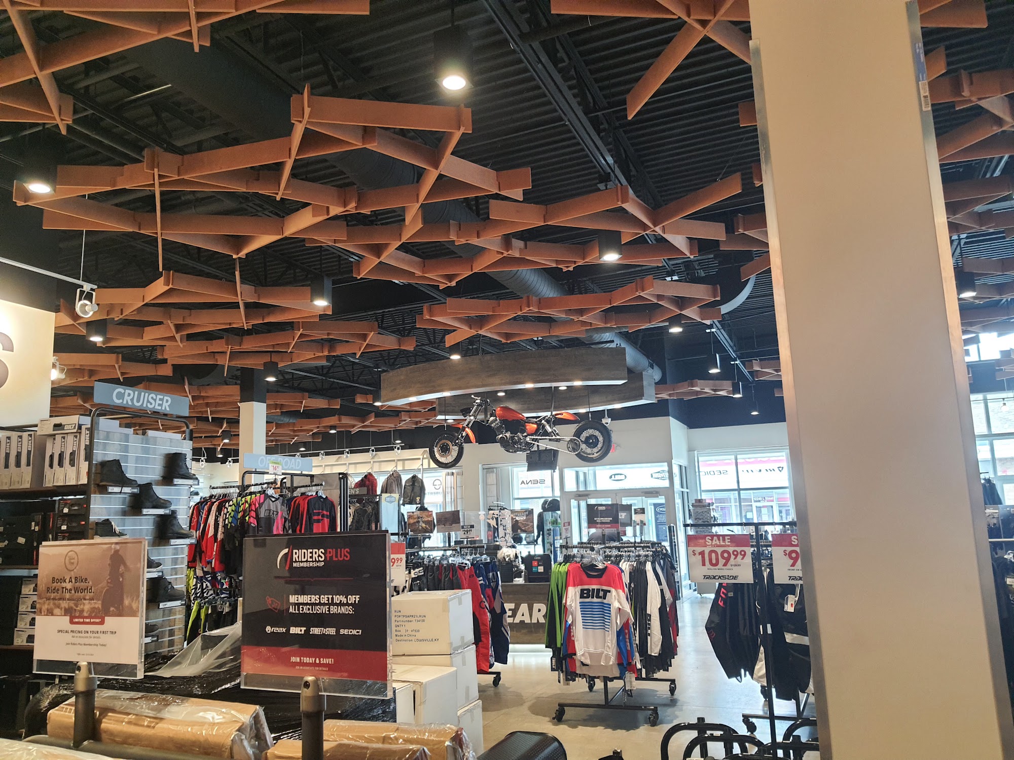 Cycle Gear is a large retailer for motorcycle gear, apparel, parts, and accessories. Customers find it a nice store with decent prices that carries everything needed for a comfortable ride. Reviews highlight that the staff is very helpful and not pushy, offering great service and expert advice, such as when selecting a helmet. Shoppers appreciate the helpful employees for finding gifts and the wide range of available items. Some note the range of pant sizes could be better. Overall, it is a great store preferred over dealerships, where people find perfect gifts and all the necessary gear.
