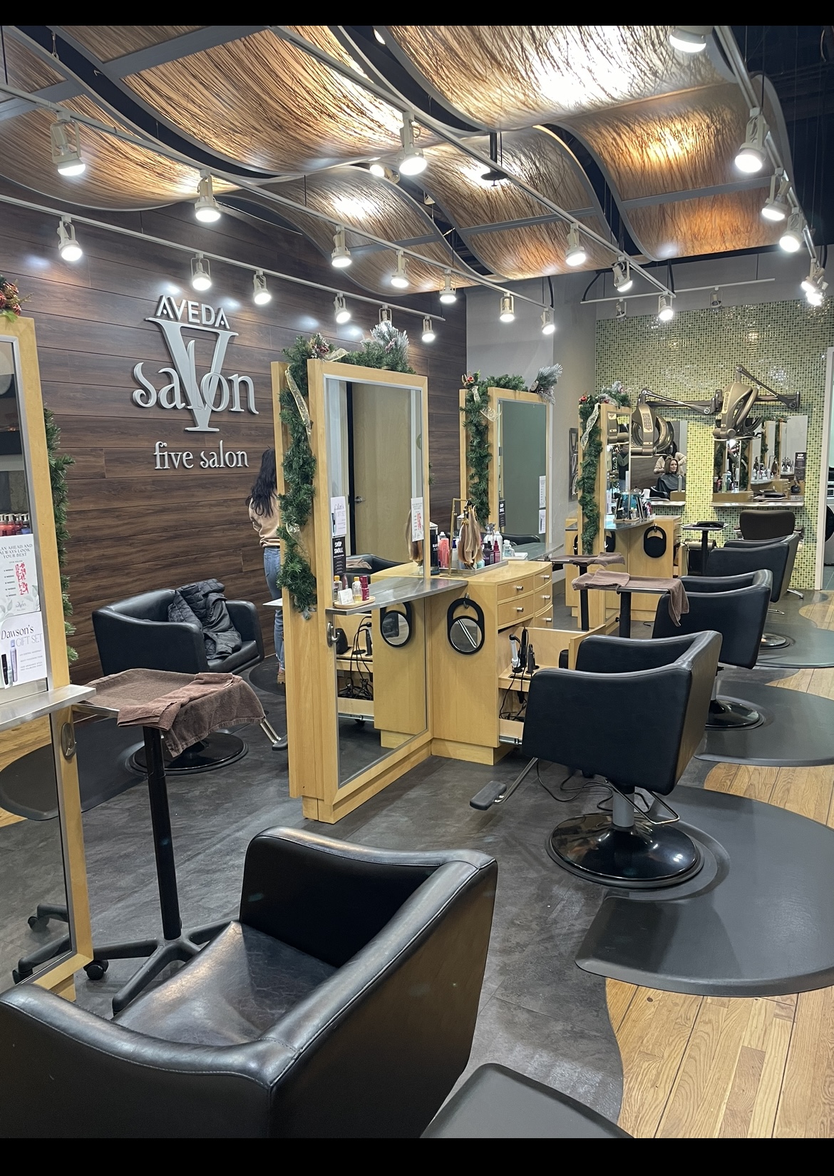 Five Salon is an Aveda lifestyle color salon and spa that offers a welcoming and relaxing atmosphere. The salon is described as clean and decorated with nature accents, creating a calm and serene environment. The staff is highly praised for their professionalism, kindness, and attentiveness, making clients feel comfortable and valued. They are well known for providing excellent hair services, including hairstyling and highlights, and for giving fantastic scalp massages. Clients often leave feeling confident, happy, and pampered, with some noting that their skin feels hydrated and revitalized after facials. The reception team is professional and friendly, always attentive to guests' needs, whether it's offering water or scheduling future appointments. The salon also features an impressive selection of high-quality Aveda products, contributing to the overall positive experience.