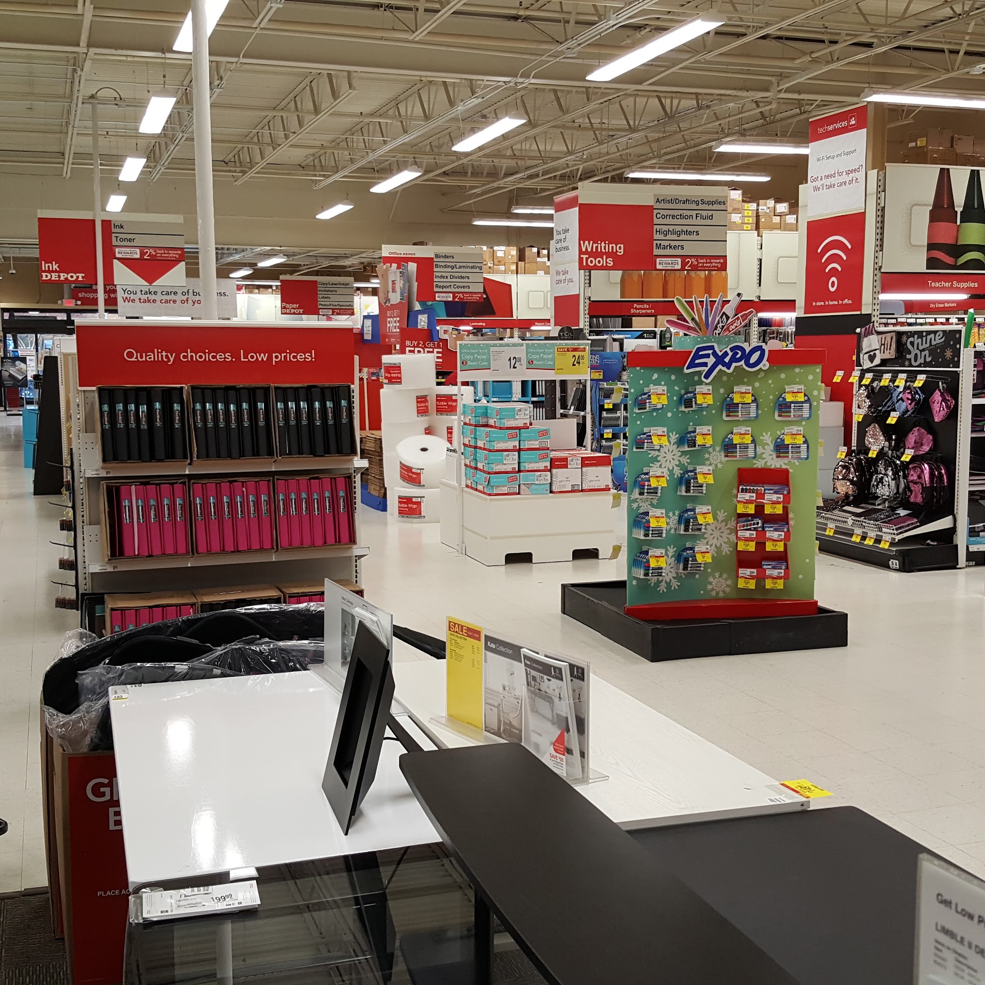 Office Depot is the destination for all business and home office needs, from paper and ink to furniture, technology, and business services like custom printing and shipping. The store offers curbside pickup for online orders. Reviews highlight that the entire team, especially in the printing department, provides exceptional, professional, and helpful service, often going above and beyond to ensure needs are met efficiently and to help save on price. Employees are described as very attentive, eager to help, and friendly. While noted as a good place for many items, some reviews mention that many things were missing, possibly due to supply chain issues. Customers report finding needed items, sometimes at a sale price.