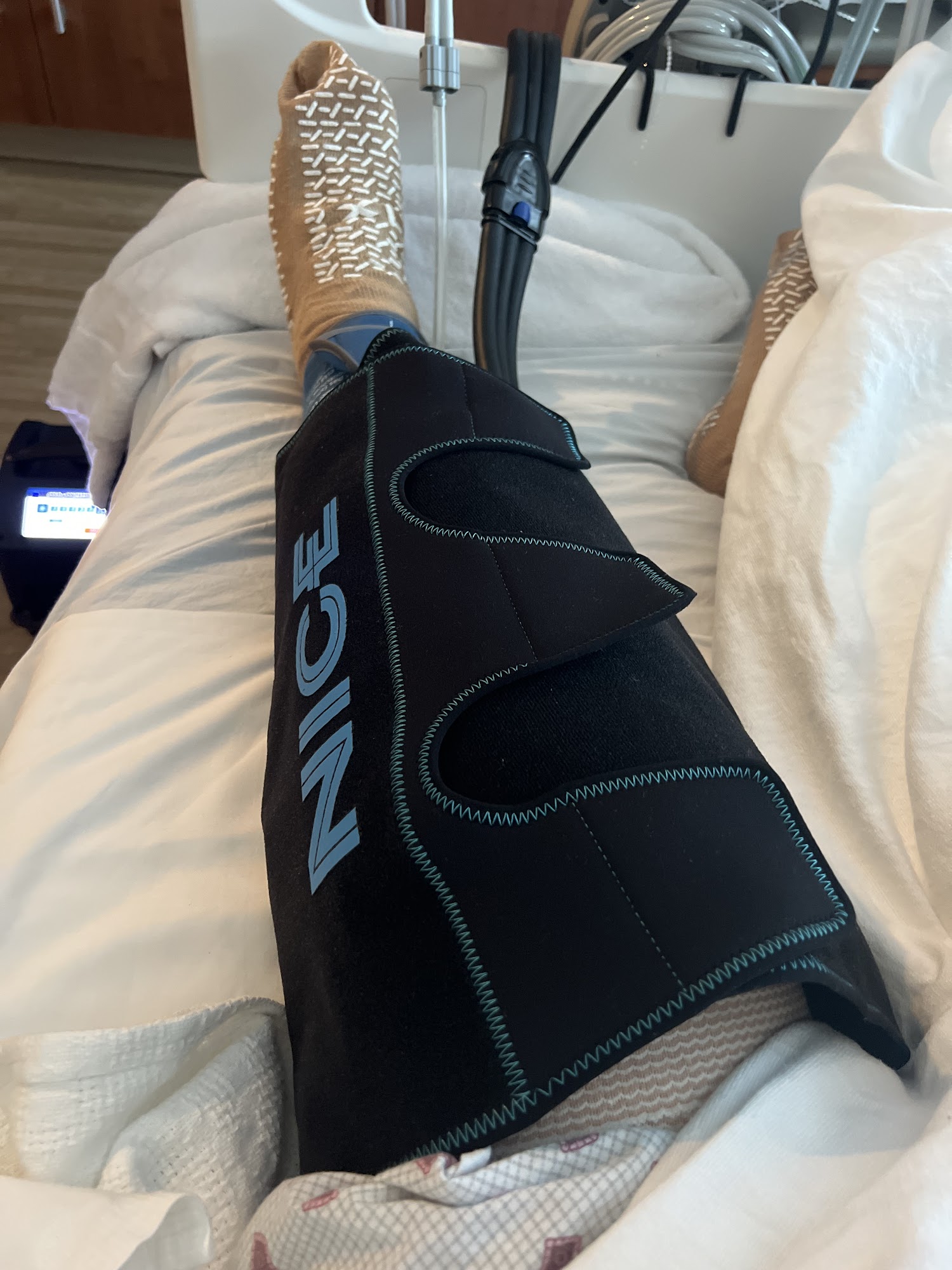 The cold compression without needing to use the ice packs was awesome! Day 3 adding the compression in addition to the cooling feature really reduced the swelling. I was back to stationary bike class at week 2 and added golf on week 3. Looking forward to getting my other knee done!