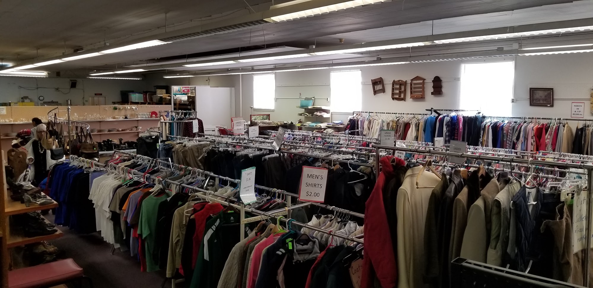 Lowest prices anywhere. Run by volunteers. Very interesting stock. My favorite thrift. Everything from mundane to deluxe.