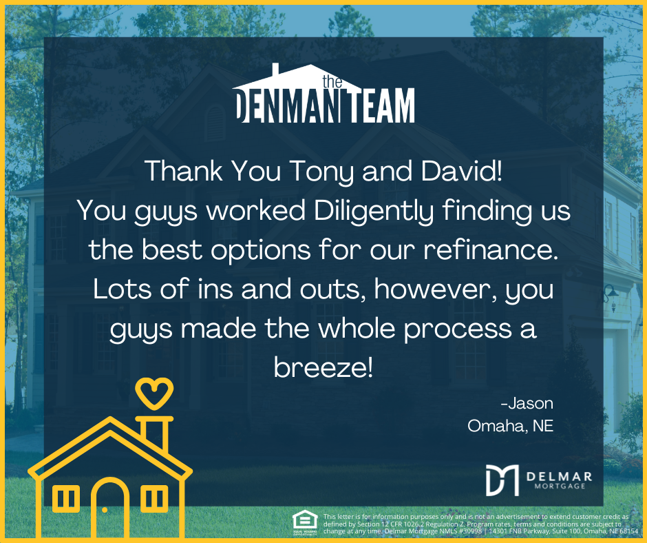 Helping Omaha achieve the American Dream to become homeowners with purchasing and refinancing mortgage solutions. This letter is for information purposes only and is not an advertisement to extend customer credit as defined by Section 12 CFR 1026.2 Regulation Z. Program rates, terms and conditions are subject to change at any time. Delmar Mortgage NMLS #30998 | 14301 FNB Parkway, Suite 100, Omaha, NE 68154