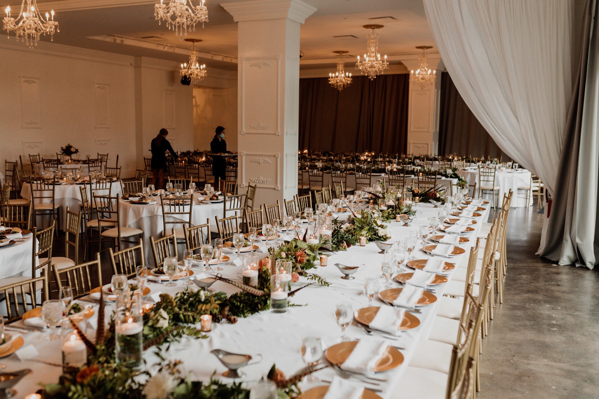 A luxurious venue crowned with glamorous chandeliers and antique furniture. The Empire Room accommodates corporate and social events for up to 500 cocktail-style or 350 seated guests in this 10,000 sq. ft event space. Enjoy our fully stocked bar, grand entrance stairway, working fireplace, and spacious patio overlooking Turner Park's holiday lights and a backdrop of the Downtown Omaha skyline. From the glamour and opulence of the exquisite chandeliers and gorgeous crown molding, the space is sure to deliver a "wow" moment to all who enter. The Empire Room's experienced event professionals will help you and your guests create memories to last a lifetime.