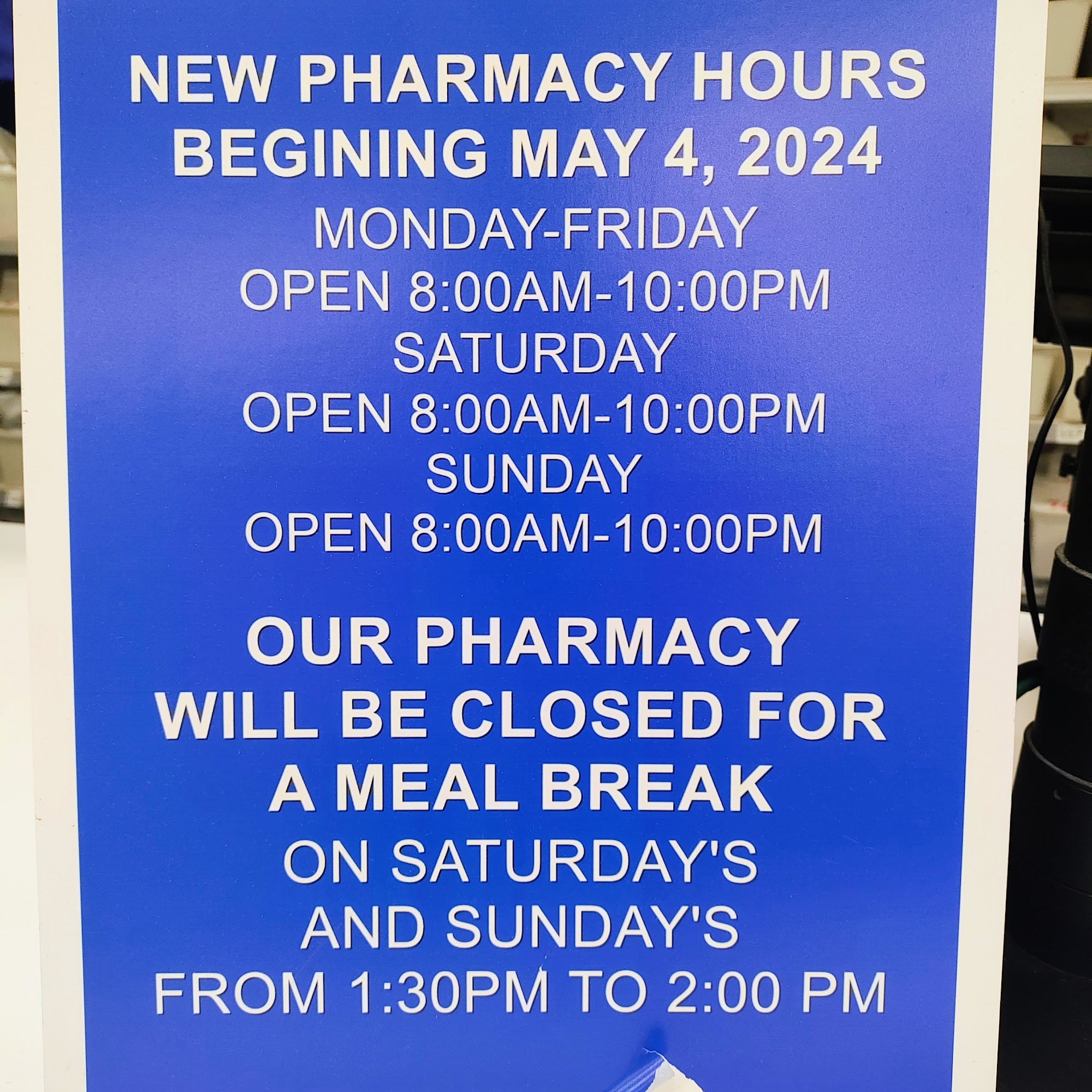 Used to be so much better when the pharmacy was open 24hrs. Since they switched hours you end up waiting more than 20min in line. I don't like meds from the warehouse because labels are extremely hard to read.