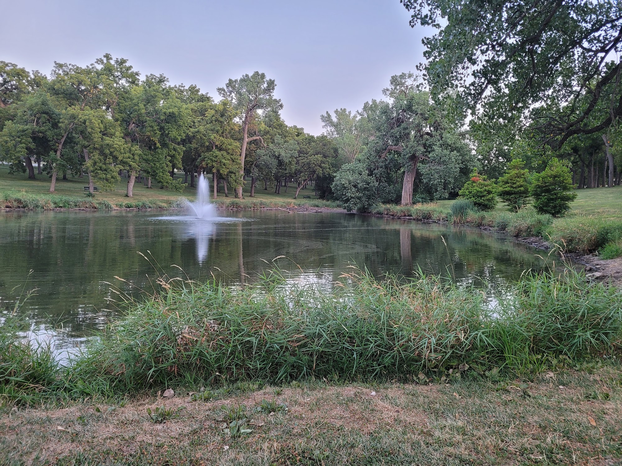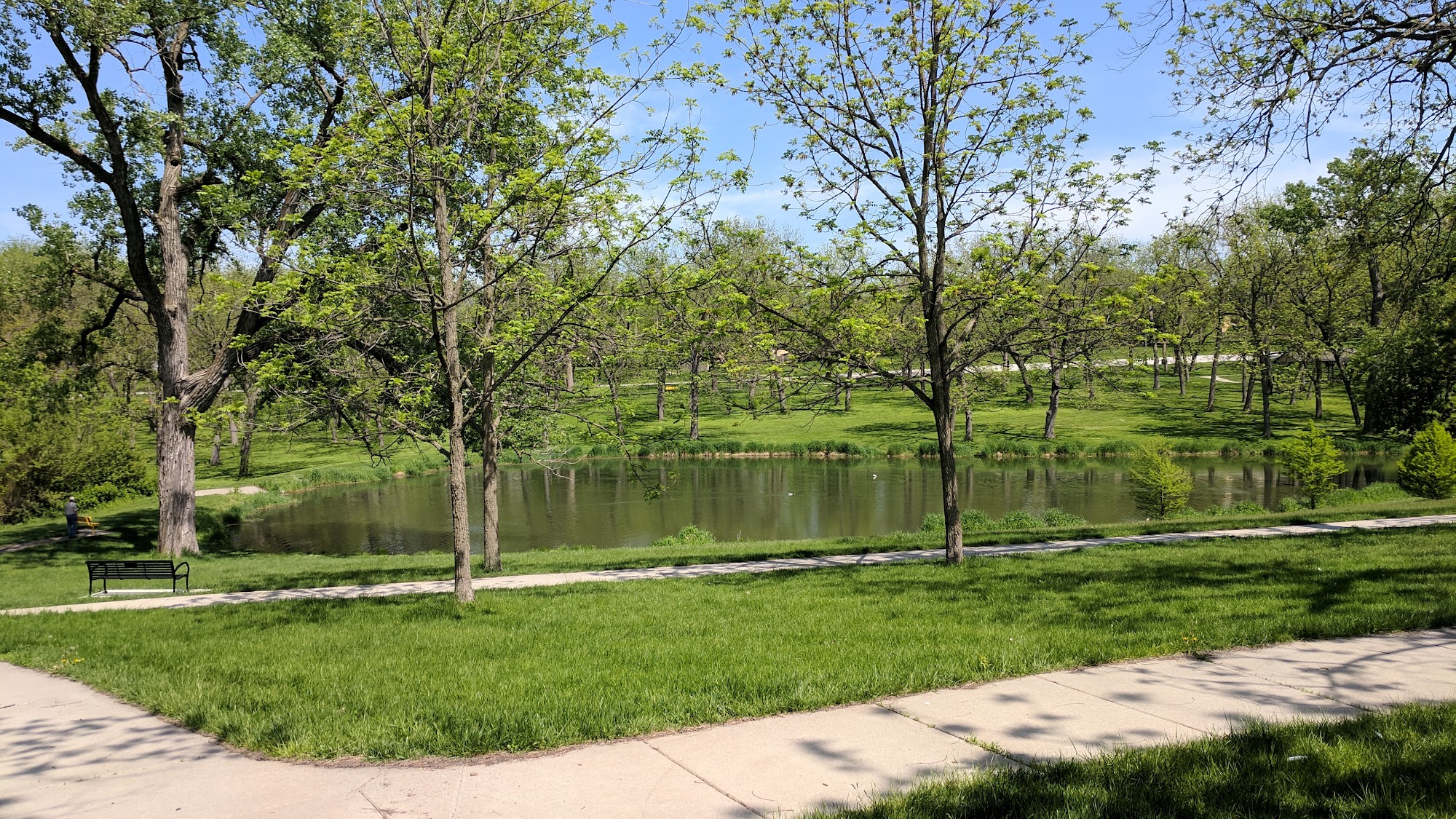 Walnut Grove Park is a scenic and peaceful city park located in Millard. It features a large pond surrounded by mature trees, making it a beautiful spot for walking, relaxing, and enjoying nature. The park offers paved trails and a cross country trail, ideal for quiet walks and exercise. There are plenty of shady areas with grassy spaces and benches, perfect for picnics, reading, or just sitting back. The park has a nice playground with climbing structures, swings, and a slide, close to the pond where ducks and frogs can be enjoyed. It is very dog-friendly, with walking trails, garbage cans for waste, and plenty of space for dogs to run on a long line. Visitors appreciate the clean picnic areas with covered shelters, picnic tables, and barbeque pits. Restrooms are available near the main picnic shelter during events. Overall, Walnut Grove Park is a lovely, quiet place to walk, play, or relax with family and pets in a natural and well-maintained environment.