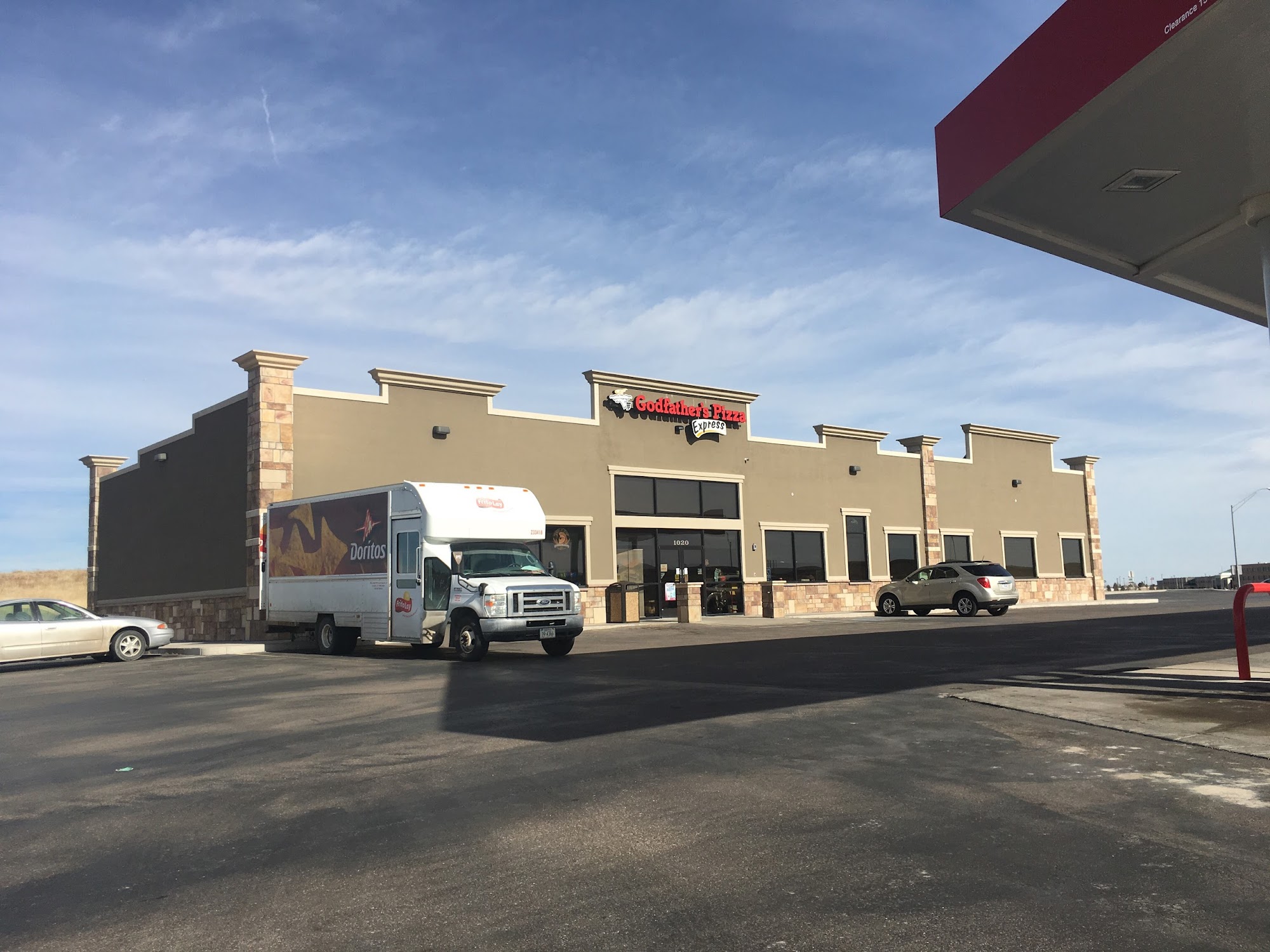 We like Godfathers pizza located inside Cenex. They have tables for dine in. The food is good. It is generally very clean, even though this evening they needed to do a quick clean in the men's bathroom, and the garbages needed emptying. We are locals and go here often.