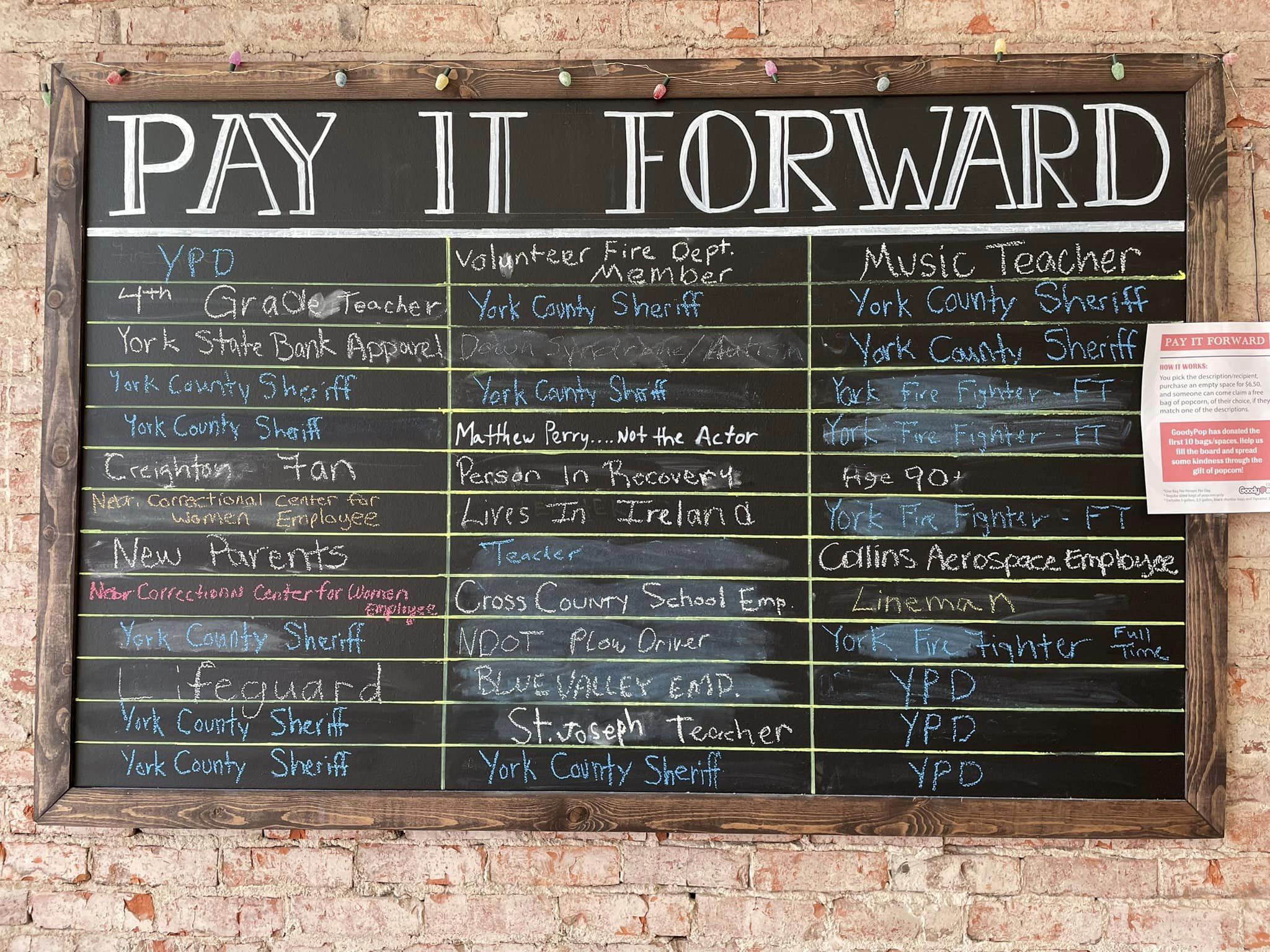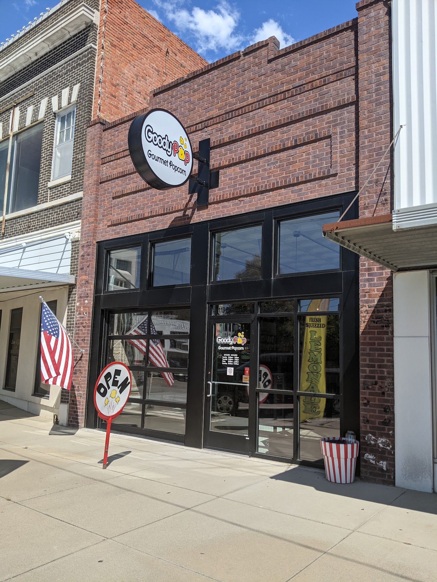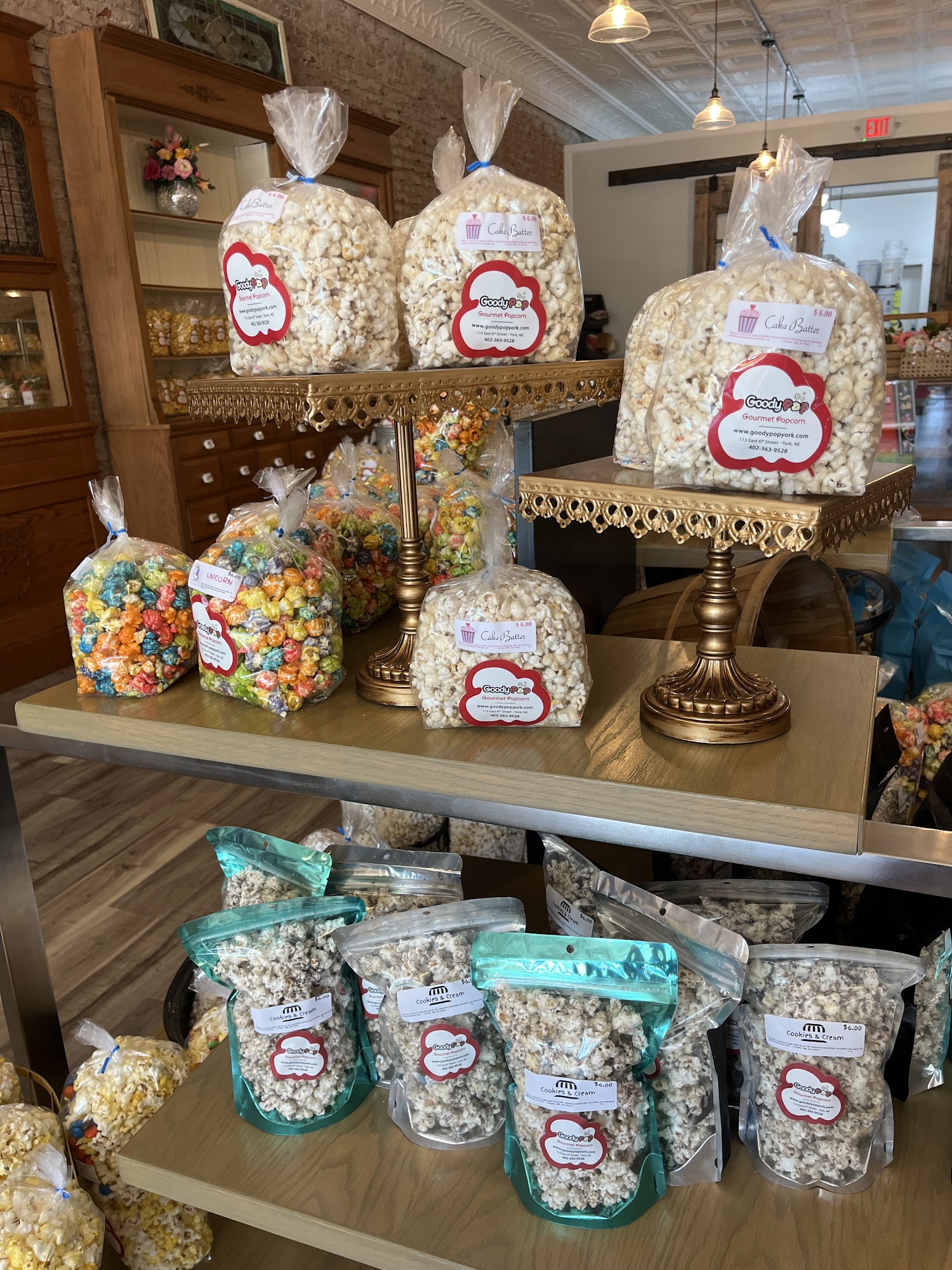 GoodyPop is a gourmet popcorn shop located in the heart of downtown York, Nebraska. GoodyPop offers over 200 different flavors of popcorn. You'll find everything from Dill, Bacon and Cheese, and Peanut Butter Popcorn, to Sea Salt and Caramel, as well as the customer favorite, Puppy Chow popcorn. With such a wide variety of flavors and combinations, customers are guaranteed to find a popcorn they love when they stop in. GoodyPop values the customer experience and ensures that everyone who walks through the door is welcomed and enjoys their visit. It's not every day that people have the chance to stop into a popcorn shop like GoodyPop, so our goal is to make the shop memorable, cozy, and a place that everyone will mark down to visit again.
