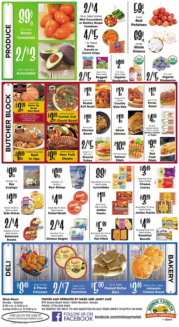 Midway Market is a small, complete grocery store with reasonable prices and a convenient location near the highway. The parking lot has some potholes, but the store offers exceptional potato wedges and chicken strips from their in-store deli. Customers have consistently found the quality to be superb, and the staff is extremely helpful, with one cashier praised for assisting a customer who accidentally caused a mess. While the store's selection is good, one reviewer had a negative experience with the owner. Overall, Midway Market is described as a great store with ongoing deals and fresh produce, meat, and cheese.