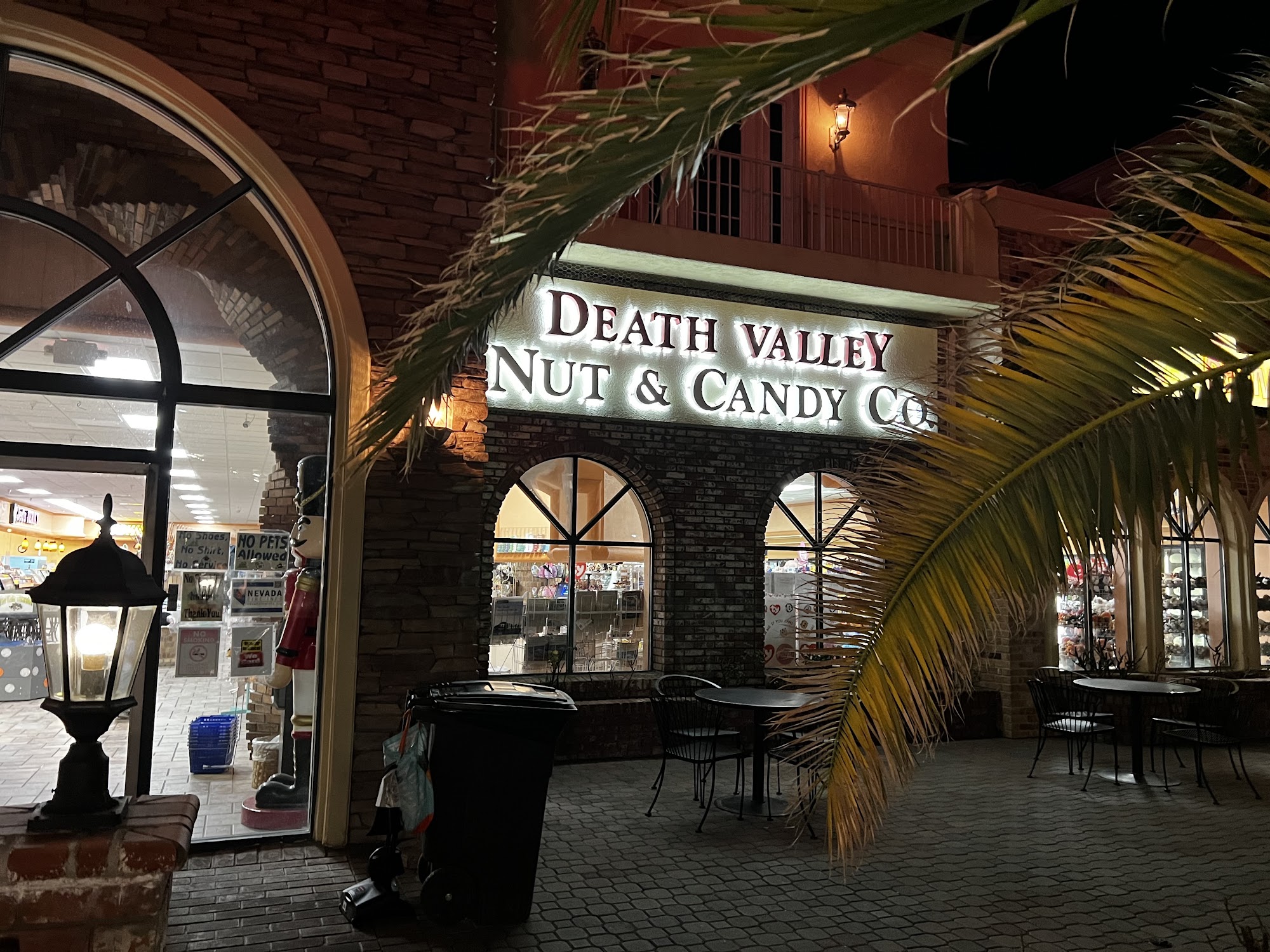 Death Valley Nut & Candy Co. is a fun stop for travelers in Nevada, offering a wide variety of snacks, including nuts, candy, dried fruits, and jerky. Visitors can find unique treats like chocolate-covered marshmallows and giant jawbreakers. The indoor area includes fast food and ice cream, with tables for enjoying meals. The clean, expanded bathrooms add to the convenience, along with easy gas and parking options, including space for big rigs. The store features colorful stone pillars and archways next to a peaceful brook, creating a charming atmosphere. Friendly employees enhance the experience, making it a favorite stop for many, especially those traveling between Oregon and Las Vegas.