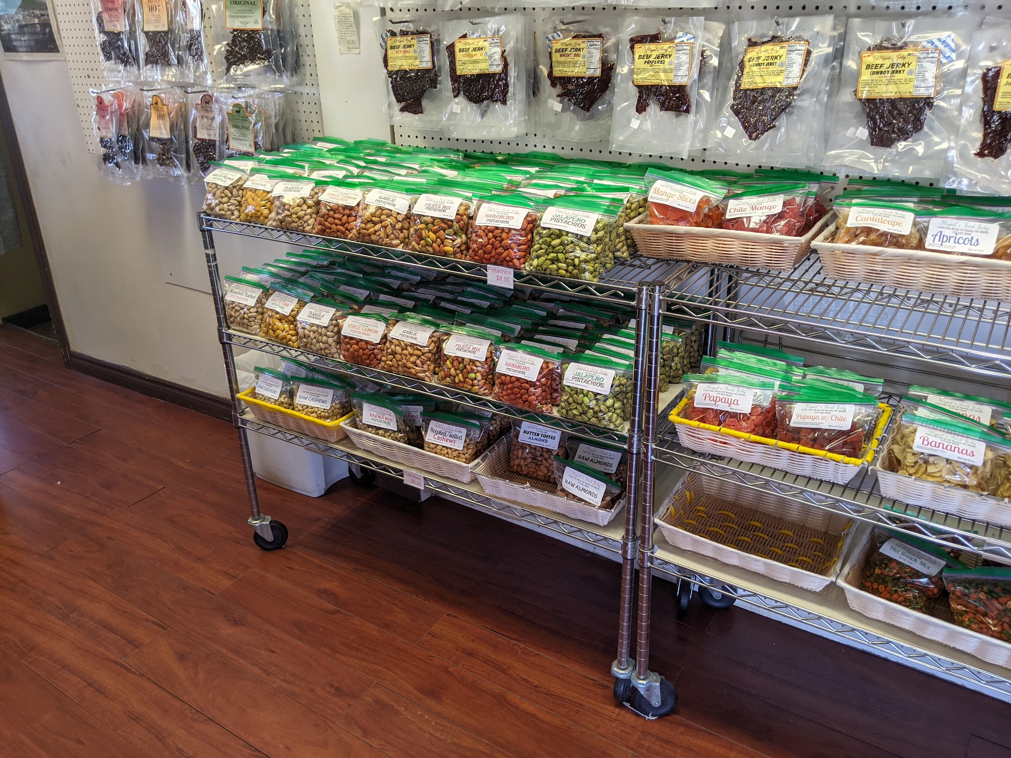 Miguel's Fresh Jerky is a family-owned business known for its amazing jerky and delicious dried fruits. Customers have praised the variety of flavors, including the garlic jalapeno and teriyaki jerky, and the tasty snacks like tequila pistachios. The welcoming vibe created by the husband-and-wife team enhances the experience. Many visitors appreciate the excellent customer service, with one even noting that the store was reopened just for them. Overall, Miguel's offers a fantastic selection and quality, making it a must-visit for jerky lovers and those seeking unique snacks.