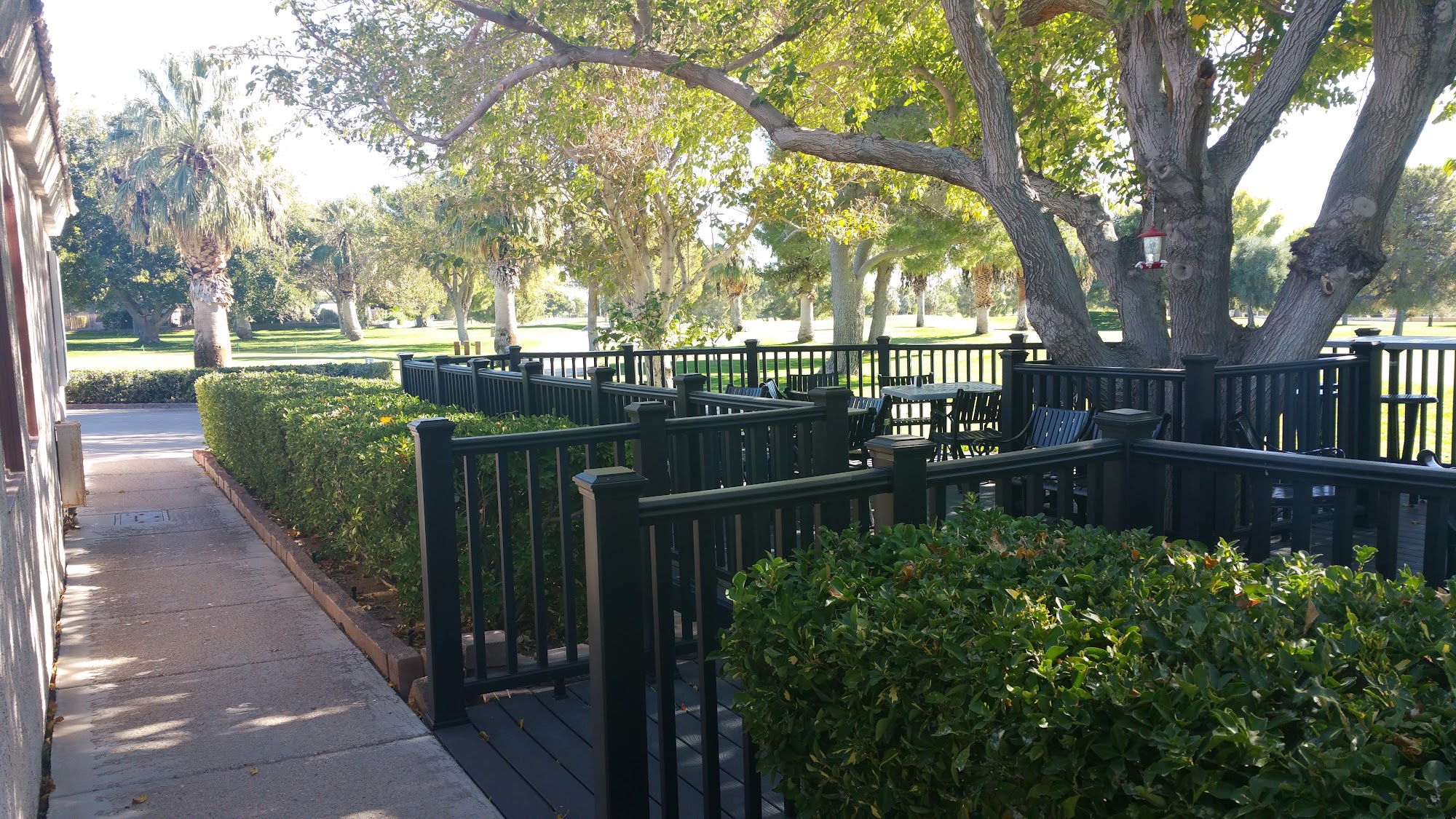 Greens are fast with lots of indulations. Could be tough putting dependant on pins placements. Fairways are clean and some are wide. Tree lined without desert type landscaping. Tee boxes are in good shape.