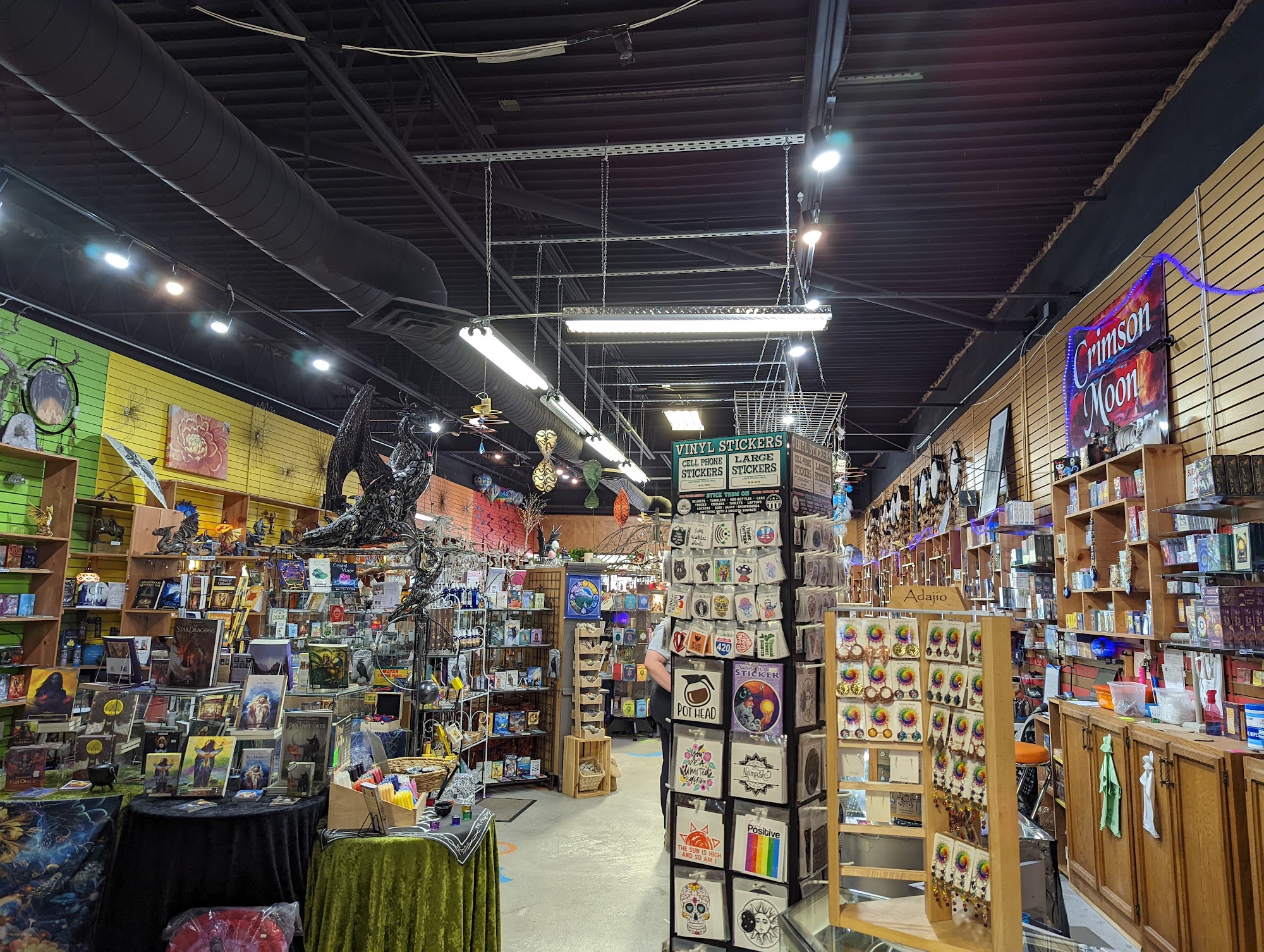 Crimson Moon is a great hidden gem of a store with an incredible and vast selection. The variety is amazing, with all kinds of stones and crystals, tarot and oracle decks, books, candles, geodes, wind chimes, jewelry, hand bags, unique art, and novelty items. The store is huge and full of treasures, with a whole wall devoted to decks and books. The friendly and knowledgeable staff share their expertise and provide great assistance. The vibes are lovely, making it a place where one can easily browse for an hour or more.