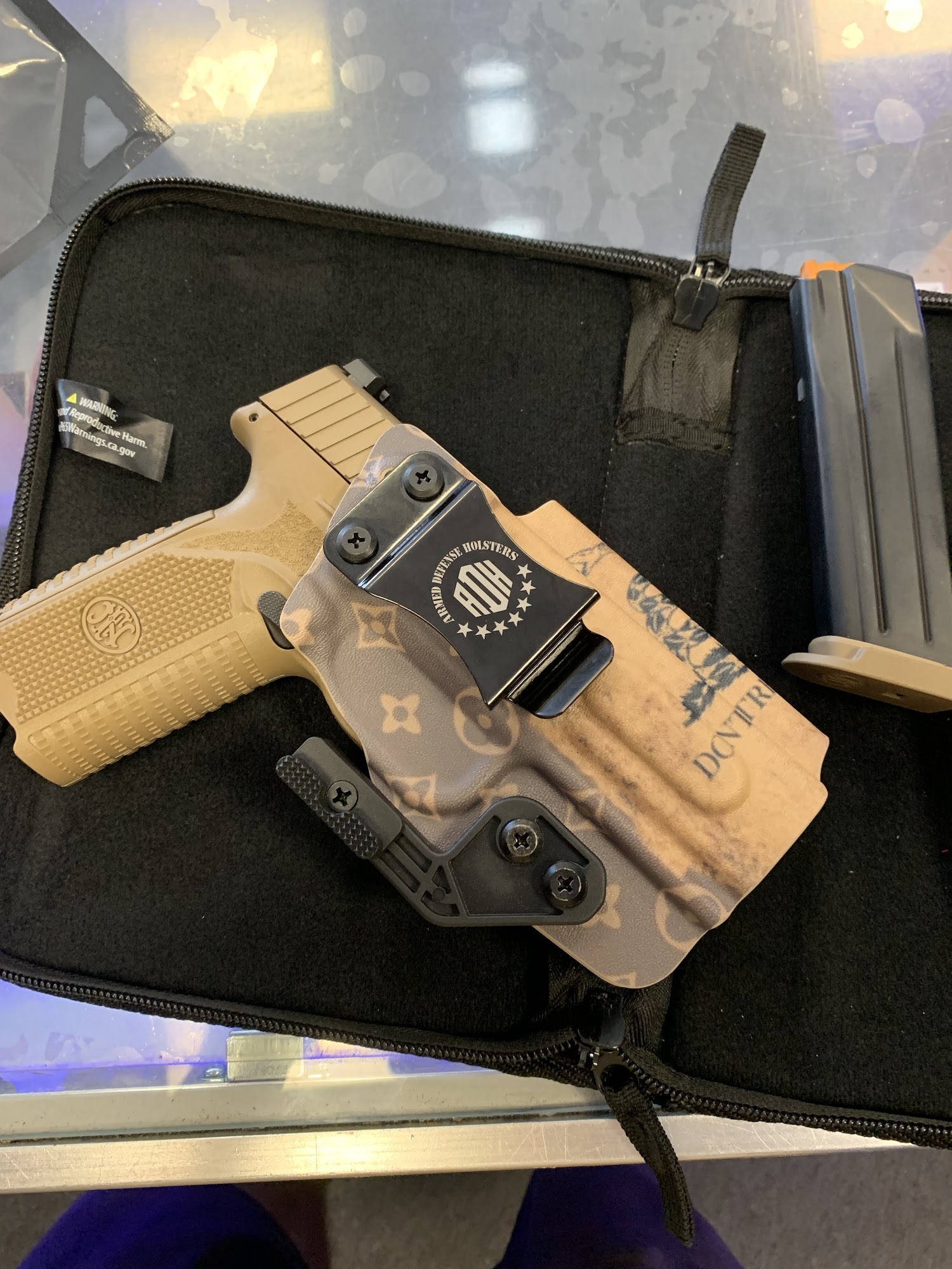 Armed Defense Holsters LLC, located in Fernley, Nevada, specializes in custom Kydex holsters and accessories for gun enthusiasts and professionals. They offer over 30 colors and patterns, with a variety of attachments for customizable inside-the-waistband (IWB) and outside-the-waistband (OWB) carry options. Customers praise the business for its excellent craftsmanship, attention to detail, and fast turnaround times. The holsters are noted for their quality, durability, and perfect fitment, often exceeding expectations. The team takes pride in their work and provides a wide selection, including magazine carriers and custom designs like two-tone and specialty patterns. Overall, Armed Defense Holsters is highly recommended for those seeking reliable, well-made holsters with personalized options.