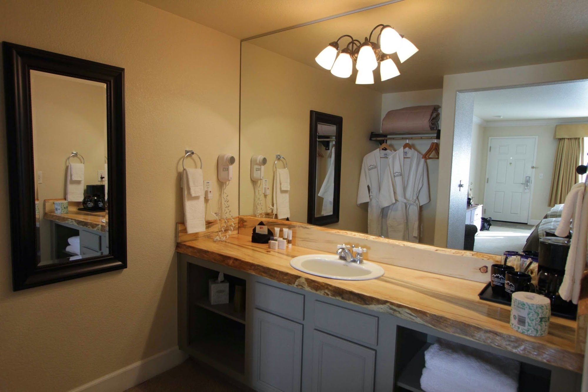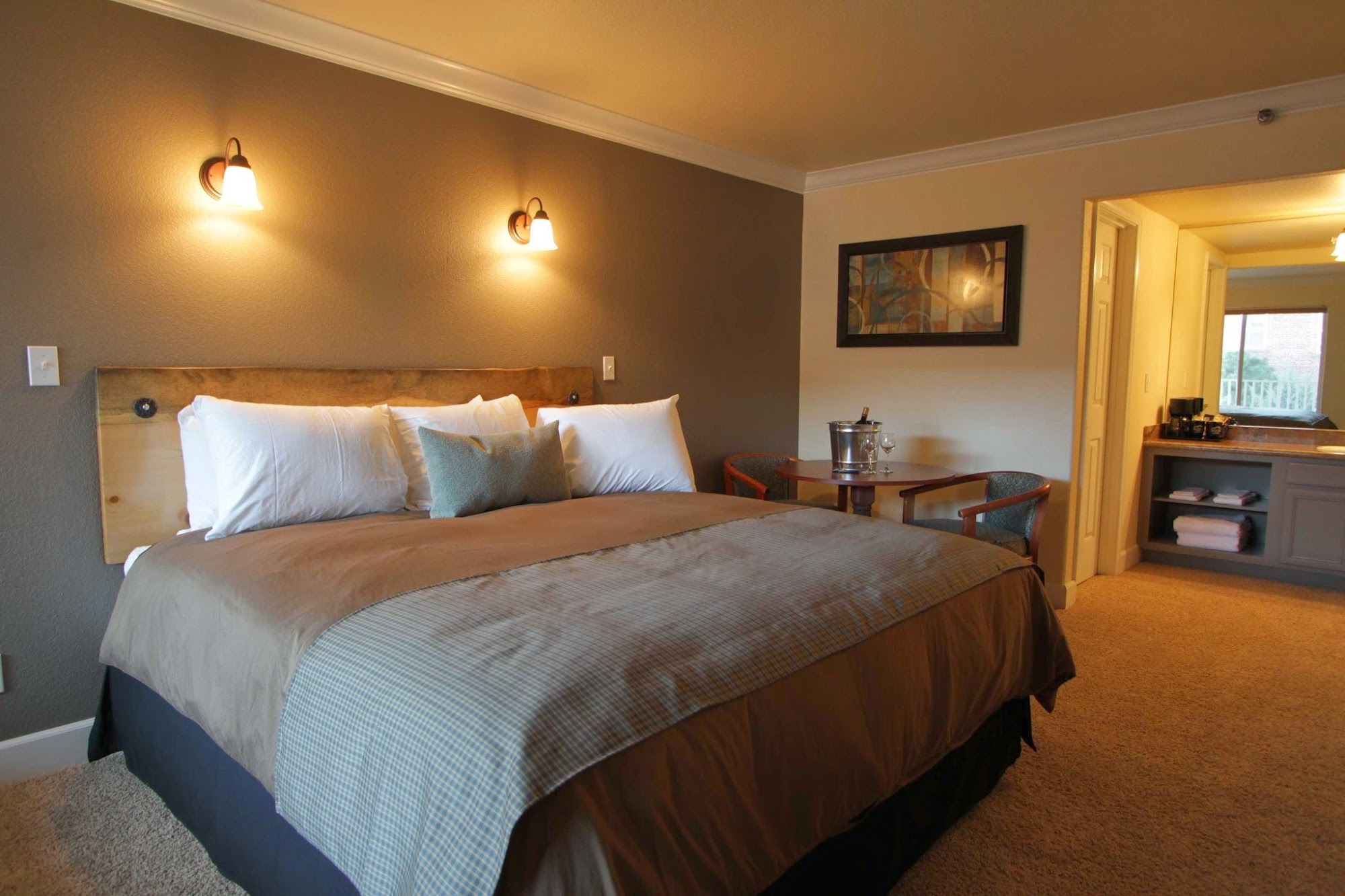 The Historian Inn offers a great location in downtown Gardnerville. A beautiful park and walking paths are behind the hotel. Staff were friendly and front desk staff was very friendly. The lobby offers complimentary coffee, tea and doughnuts, a nice touch to start the day. Rooms were clean, comfortable and spacious. The AC unit was quite loud and took a while to cool the room. No hair dryer was provided. The hotel is dog friendly and trails back behind where you can walk your pups. Some guests found pillows and comforters smelling bad and breakfast done by 9:45 AM and the promised 11 AM.