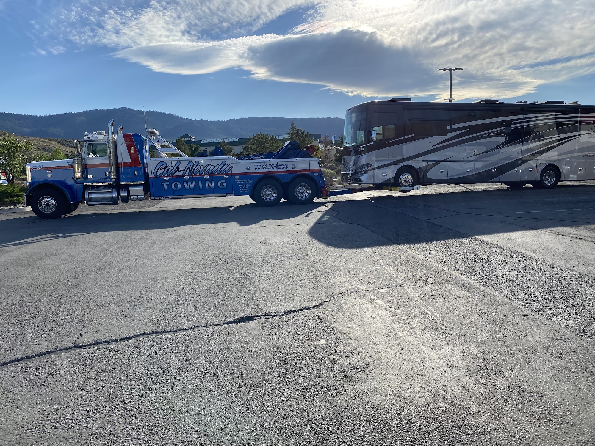 Cal-Nevada Towing was established in 2000 as specialized heavy duty towing company by John King. We pride ourselves in delivering careful attention to our customer needs. Our skilled employees always go the extra mile to provide exceptional service. Cal-Nevada Towing has the reputation as the premier towing services company in the region. Cal-Nevada Towing has grown to be the largest and most capable full-service towing company in the region. We are the company that is called when other companies can't handle the job. We can help with light, medium and heavy duty towing, roadside assistance, and transport services. Cal-Nevada covers a broad geographic area from South Central Nevada to Northeast California north and to the Oregon border.
