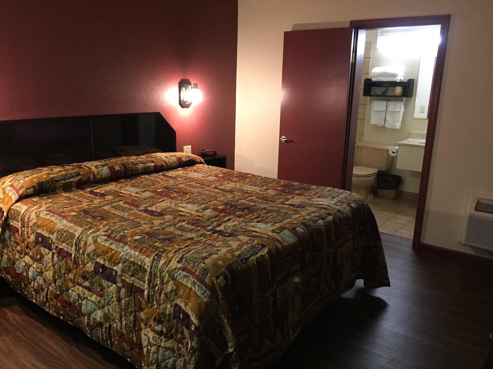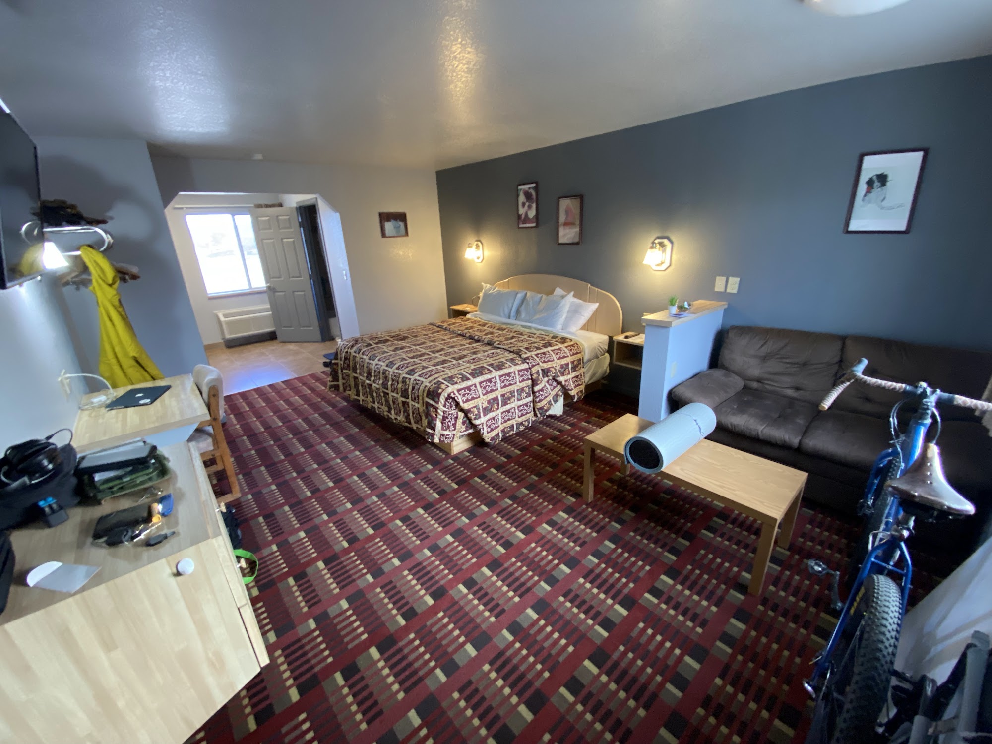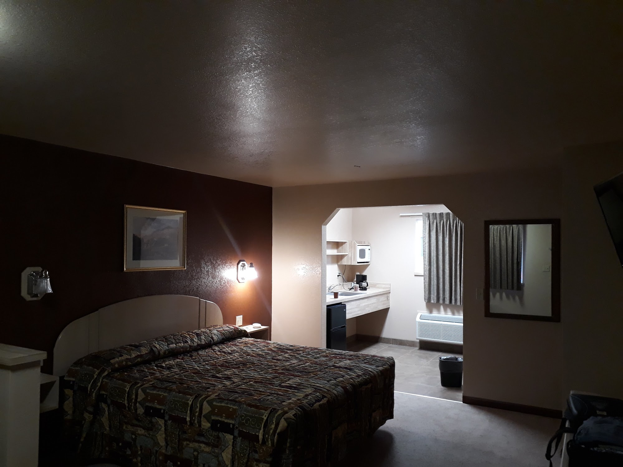We enjoyed the welcoming host, a long time resident, and appreciated that the mini fridge was already cold. The room was spacious, the bed very comfortable. The shower felt great after camping, and the heater could be set for just the right temperature.