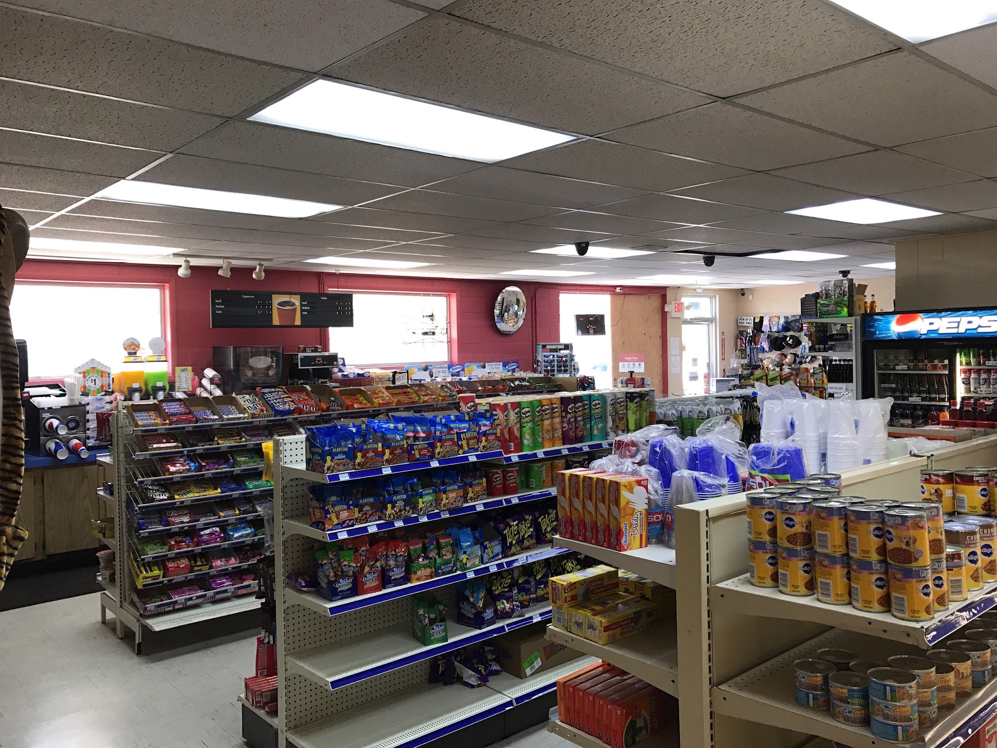 Clean bathrooms! The shop had a good selection of food items, especially for its size, and it even had music playing inside. Gas pump worked as expected.