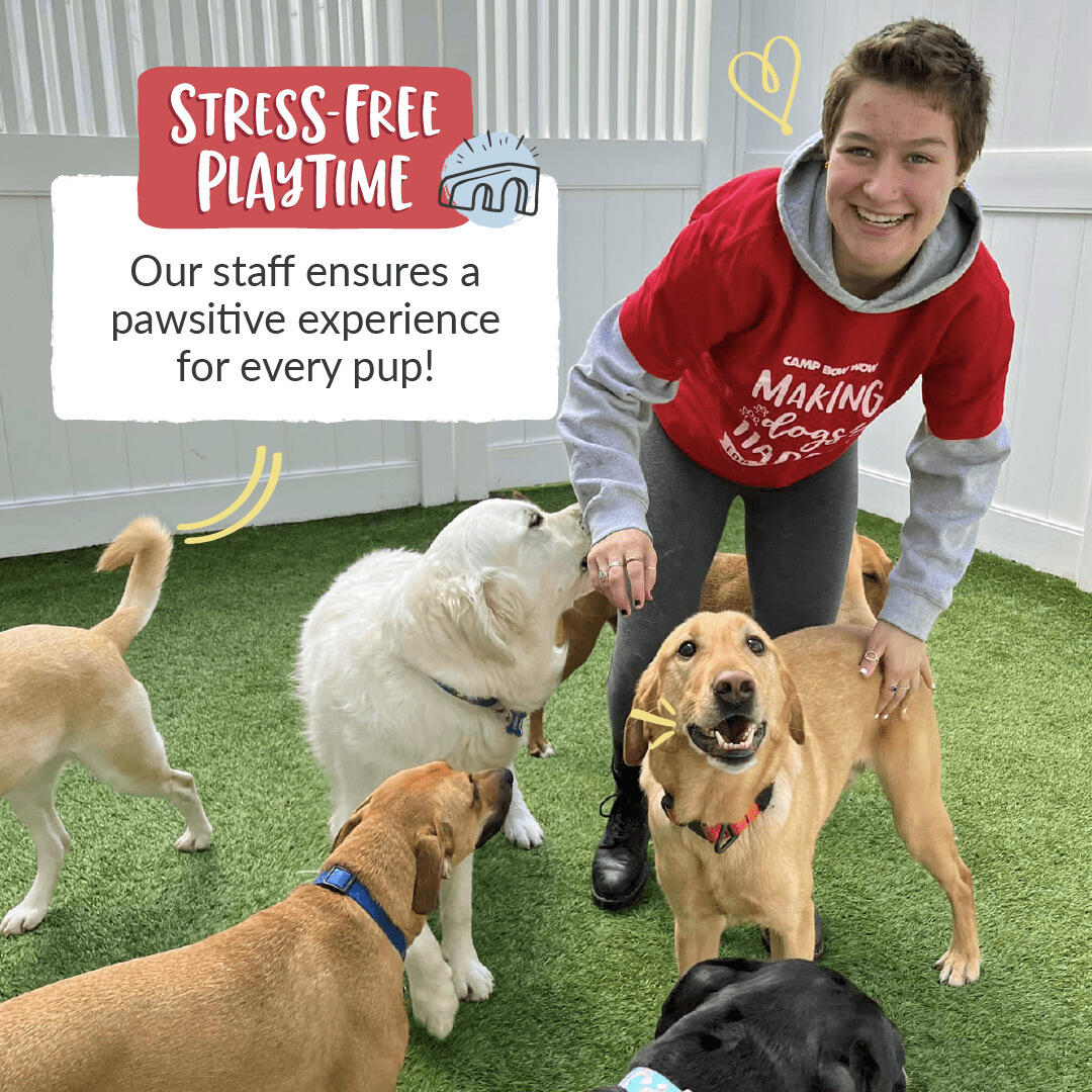 Camp Bow Wow is a dog daycare and boarding business where dogs can romp around in open yards, make friends, and learn something new. For over 25 years, it has been making tons of Happy Campers. The staff is friendly, caring, and kind, taking great care of the campers with pets and ear scratches. Safety is important; no dog is allowed without an interview and current shots. The daily activities are great, and there is an active monthly calendar of enrichment programs, ensuring there is never a dull moment. Dogs show amazing tail wags in anticipation and sleep well after a fun day. Owners feel comfortable and have a good feeling when dropping off their pets, knowing they are taken good care of and will have fun playing with friends. It is a highly recommended place where both dogs and their owners are going to love it.