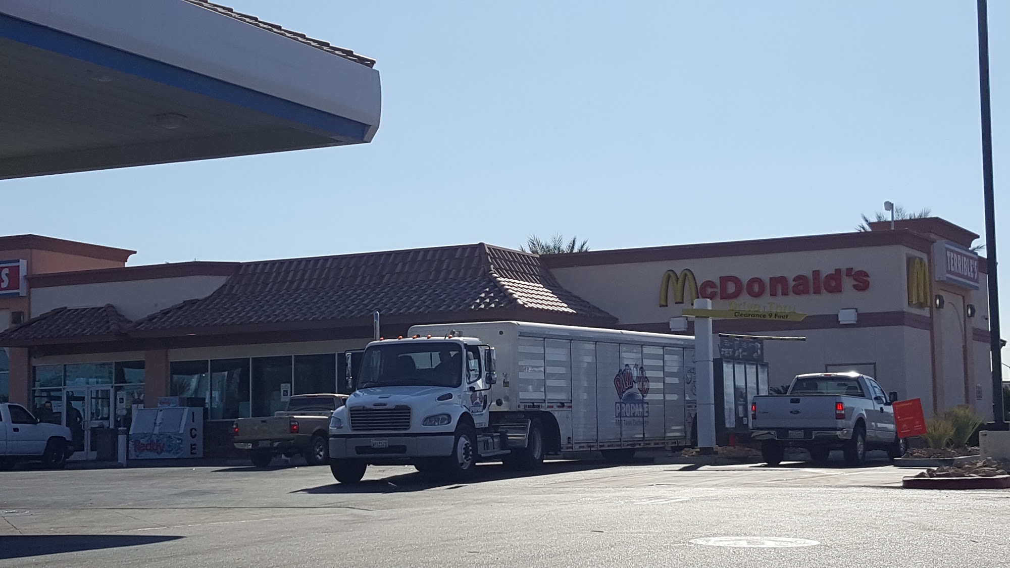 This Terrible Herbst is big and clean. Original type kiddy gifts plus a really cool, self serve Mocha Frappuccino machine. $2.99 for a good sized delicious cold coffee. (Attached is a McDonald's, currently available by drive-thru only.)