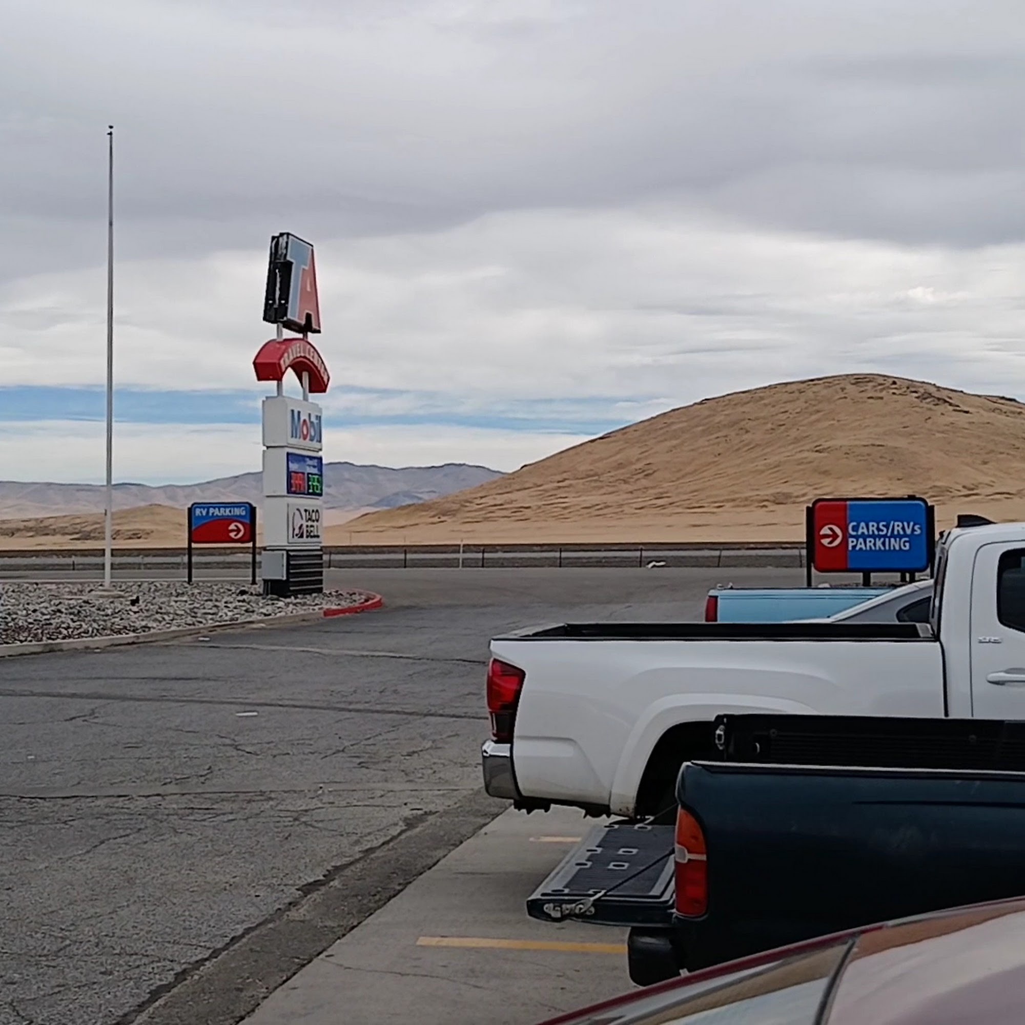 Nice TA truck stop with beautiful views in the back dirt parking lot with lots of parking. Fryer was down at taco bell so menu was limited but still good. Tons of gnats and your GPS thinks you're on the highway so will try to take you the opposite way 20 miles.