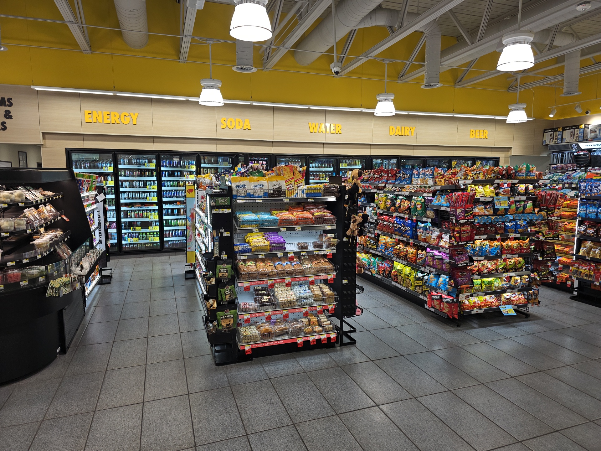 Absolutely brand spanking new, friendly staff and clean bathrooms. Not a mega sized loves drivers, space is limited.