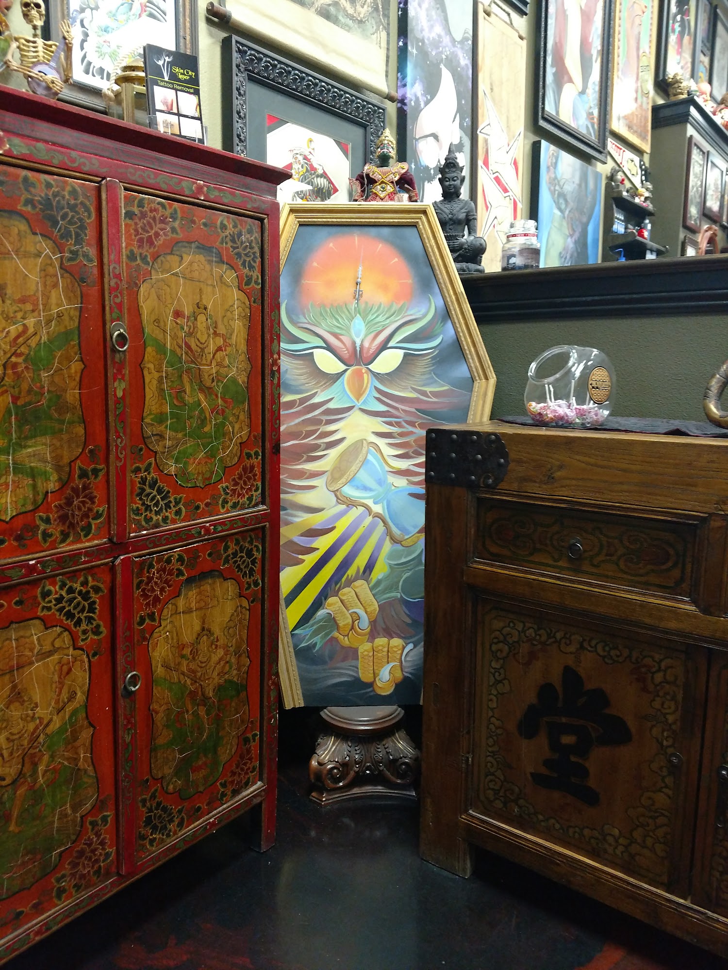 We are a Fully Custom Tattoo shop just minutes from the strip with 6 artists with a variety of styles to choose from. Call for a consultation or come by the shop. 702-558-0885 We are located at 5255 S Decatur Blvd. Ste 108 on the northwest corner of hacienda and Decatur, just a few blocks west of the Luxor.