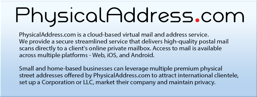 We are a cloud-based virtual mail and business address service. Travelers, students, military personnel or anyone who would like to access their postal mail via their computer or smart-phone can leverage the virtual mail service. Business clients can set up a virtual business address by using one of the premium physical address locations to set up a Corporation, set up an LLC, market their company, attract international clientèle and maintain privacy.