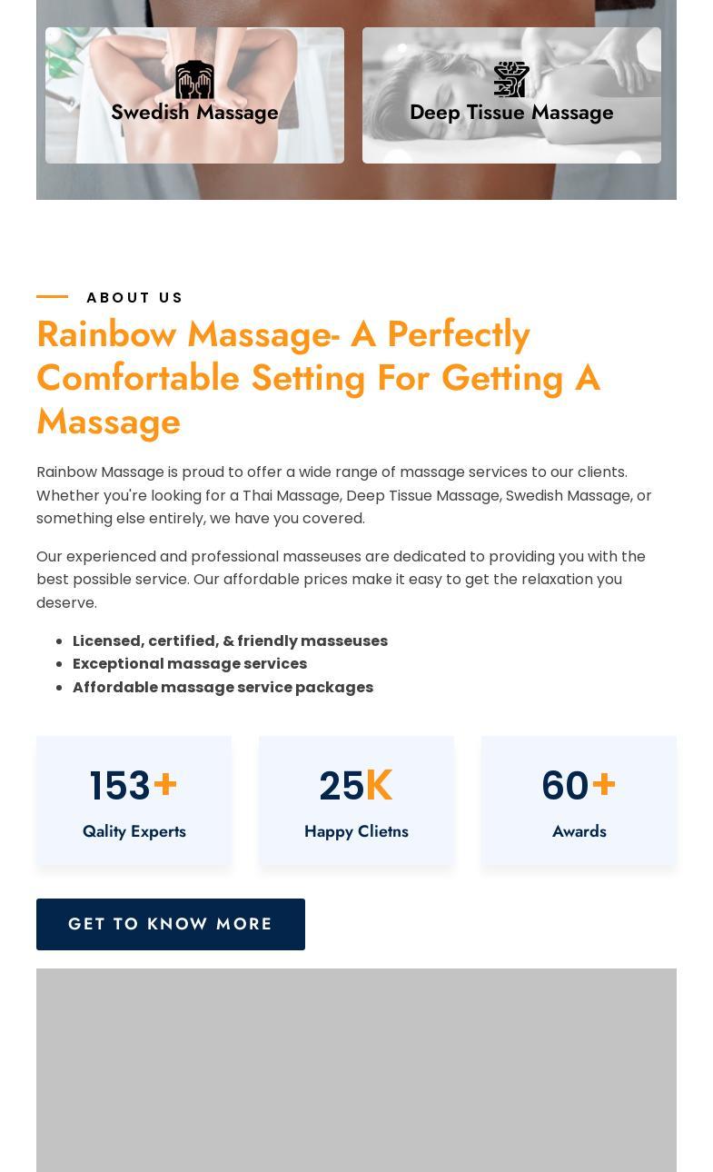 Rainbow Massage offers a variety of massage services, including Thai, Deep Tissue, and Swedish massage. Clients praise the experienced and professional masseuses who provide exceptional massage services at affordable prices. The atmosphere may not be the most serene, but customers appreciate the attentive care and personalized service they receive. Many reviewers highlight the deep tissue massages, noting the effectiveness in relieving muscle tension, though they acknowledge the potential for soreness afterwards. Customers have described the masseuses as knowledgeable, skilled, and able to identify areas of stress, providing extra attention and relief in those areas. Overall, Rainbow Massage is recommended for those seeking a quality massage experience at a reasonable price, with a focus on skilled and friendly service.