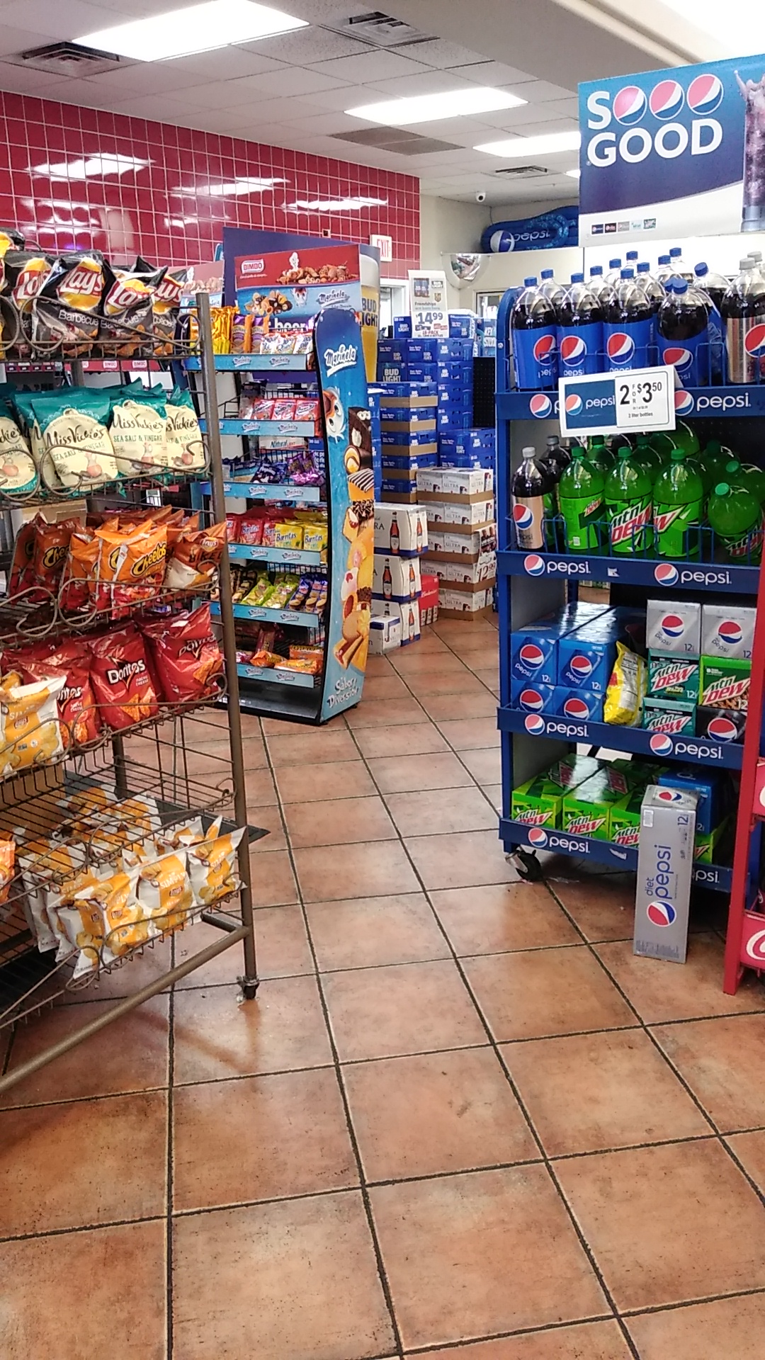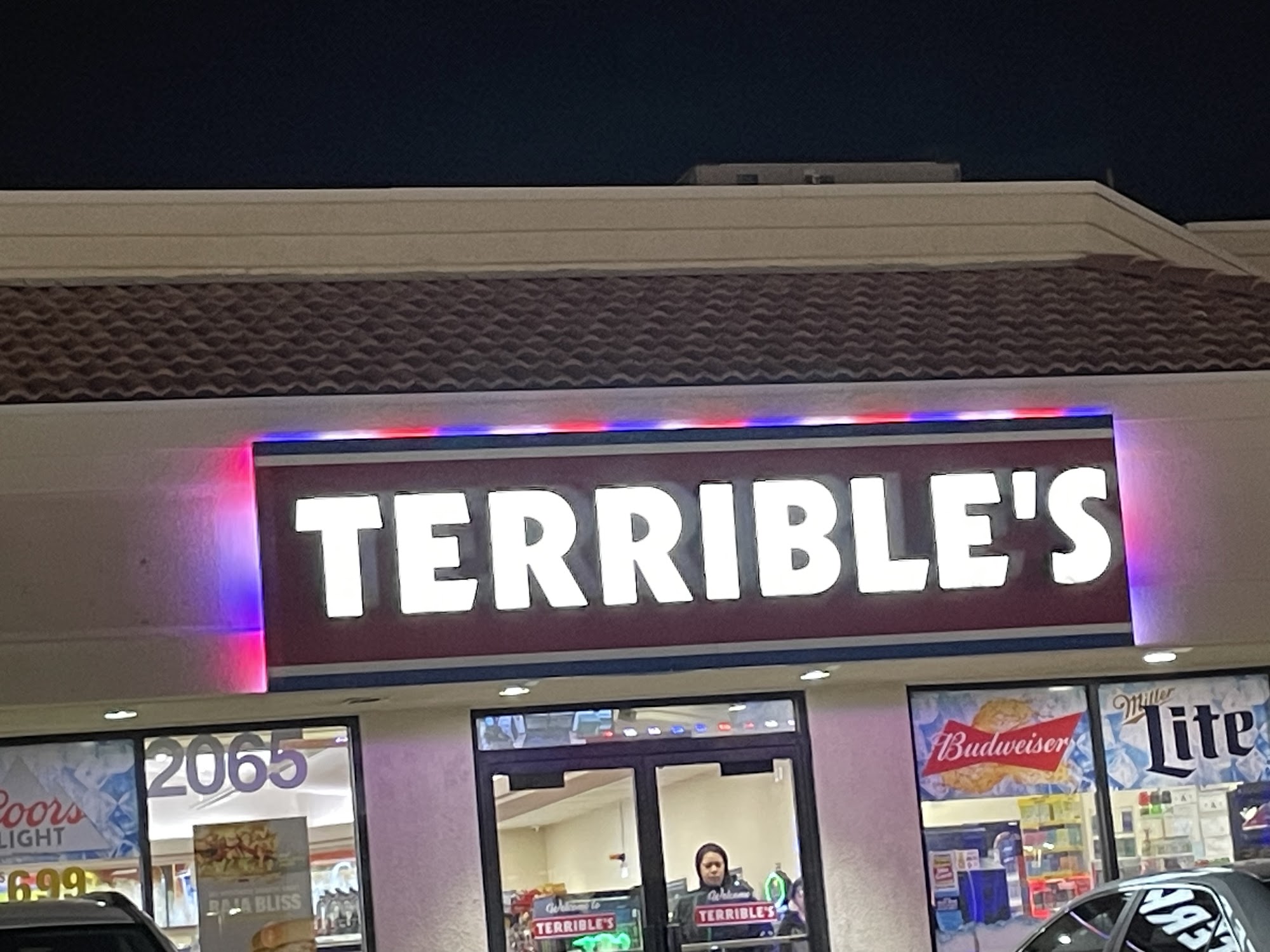 The cashier was great. She had excellent customer service skills and did her job well she was definitely in charge of what she was doing and totally on the ball. The other employee was also super friendly and helpful. The store was very clean and so was outside of the gas station. PLEASE MAKE TERRIBLE'S T-SHIRTS!!