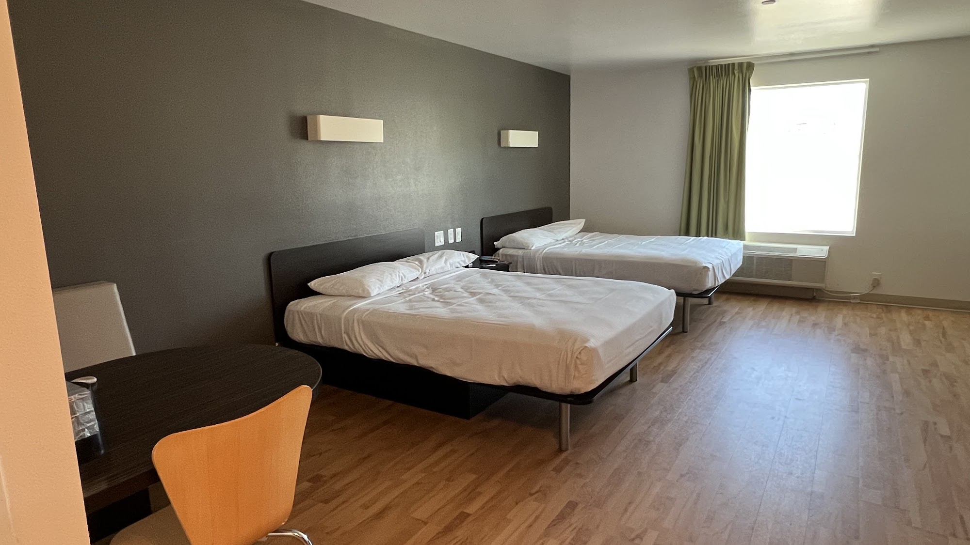 Quite location, not next to a busy freeway. Receptionist was friendly and accommodating. Room was clean and comfortable. Bonus was a cooktop, and full size refrigerator