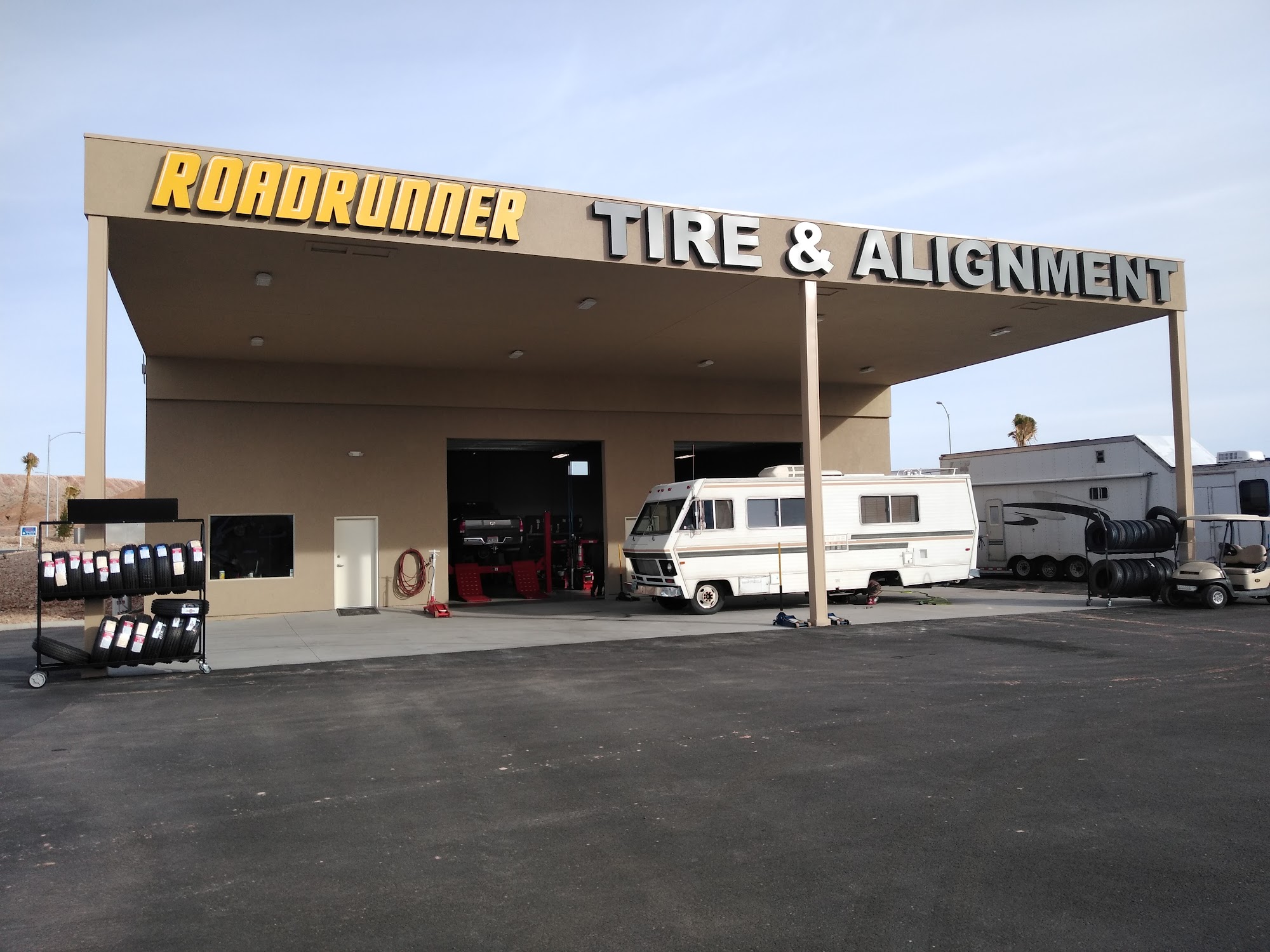 Roadrunner Tires and Alignment provides very good and knowledgeable service. The folks are quick, friendly, and helpful, offering reasonable and good prices. They perform tire swaps, replacements, alignments, and shock and strut work with great timing, getting vehicles running better. They are noted for easy access even for large travel trailers and for taking the time to fix critical issues. While some note prices can be higher than other regions, many recommend it as the place to go for tires and service in the Mesquite area.