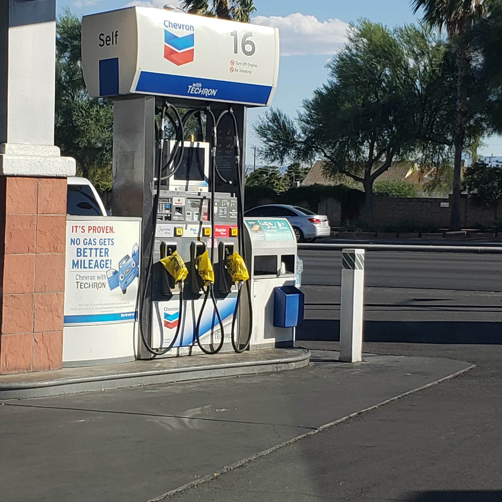 Is gas sold here? All I'm seeing is yellow bags on the pumps and all the other ones aren't accepting card payments. Who's managing this business?