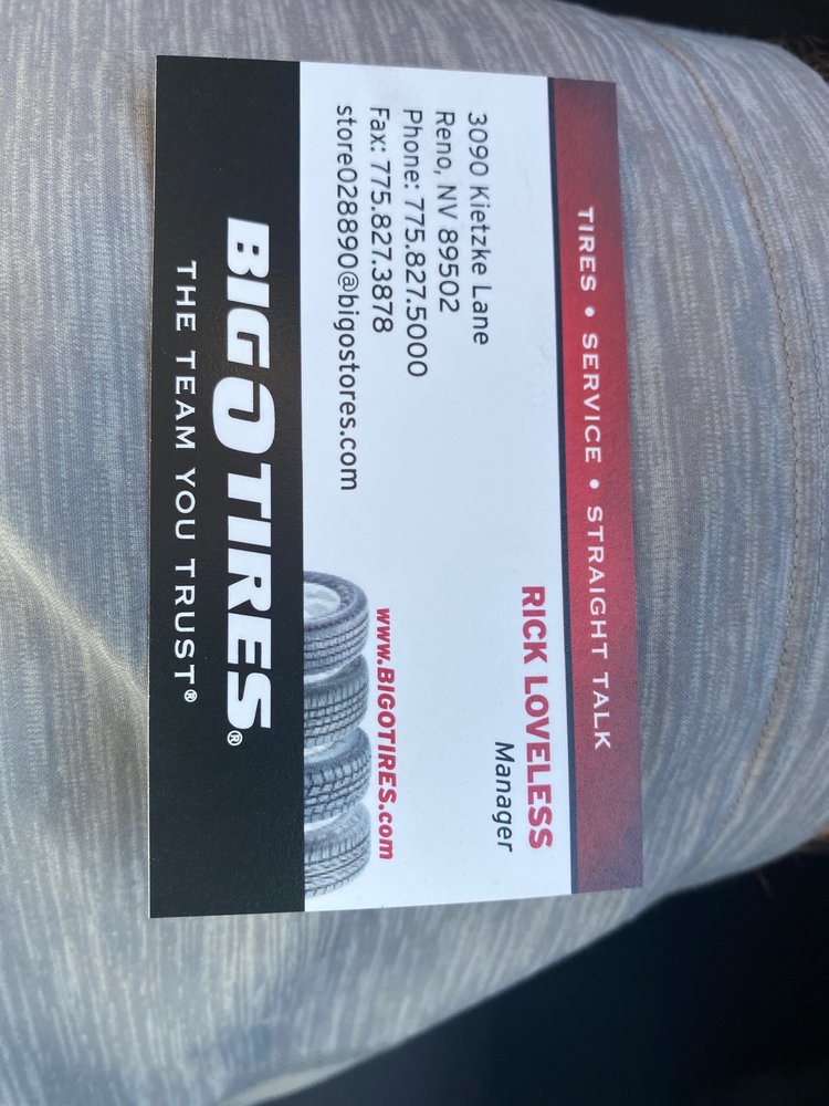 If you are in need of tires or tire service go see Rick Loveless at Big O tires on Kietzke Lane in Reno. He's a straight-shooter and a good person.