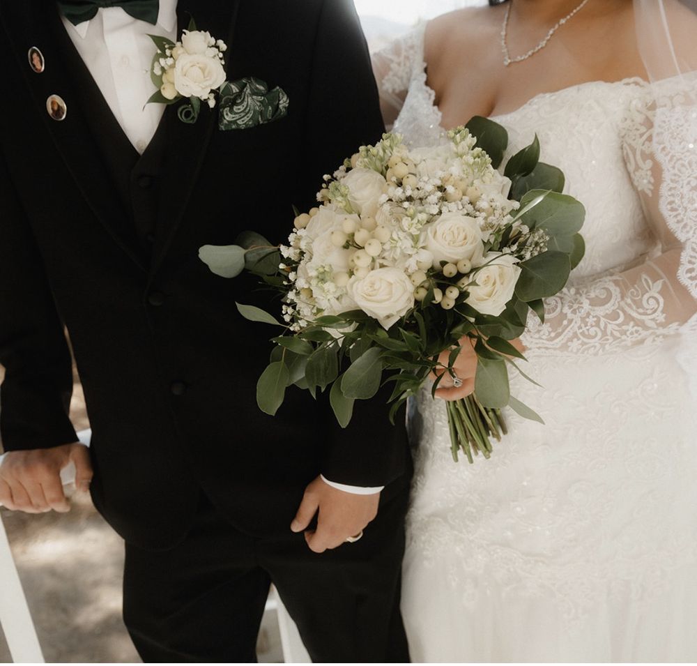 April did my wedding bouquet, boutonnières and corsages! Everything turned out beautiful and was handled with care. Thank you so much again April