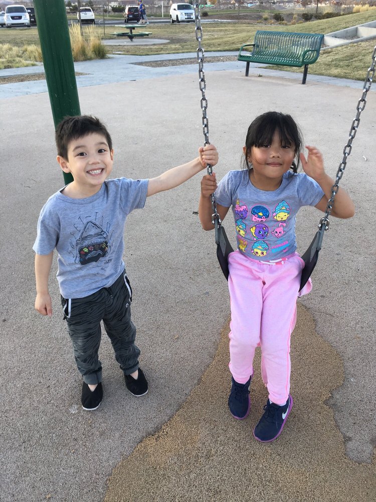 Damonte Ranch Park is a great and fabulous park with beautiful views of the mountains. It features a nice, well-maintained paved walking trail around the protected wetlands and marshland. The loop is around 3 miles, offering a great way to get nature in while being close to home. Visitors can enjoy bird watching and occasional wild horses. The park has a fun playground with multi dimensions, slides, and cool fun features. It is very safe, with repairs made whenever broken. There are some covered picnic tables and a new and clean picnic area. A bathroom is there and it's usually clean. The park is dog-friendly; dogs are welcome on a leash with pooh bags available, though not on the playground. It is a super nice place to walk dogs with friendly people.