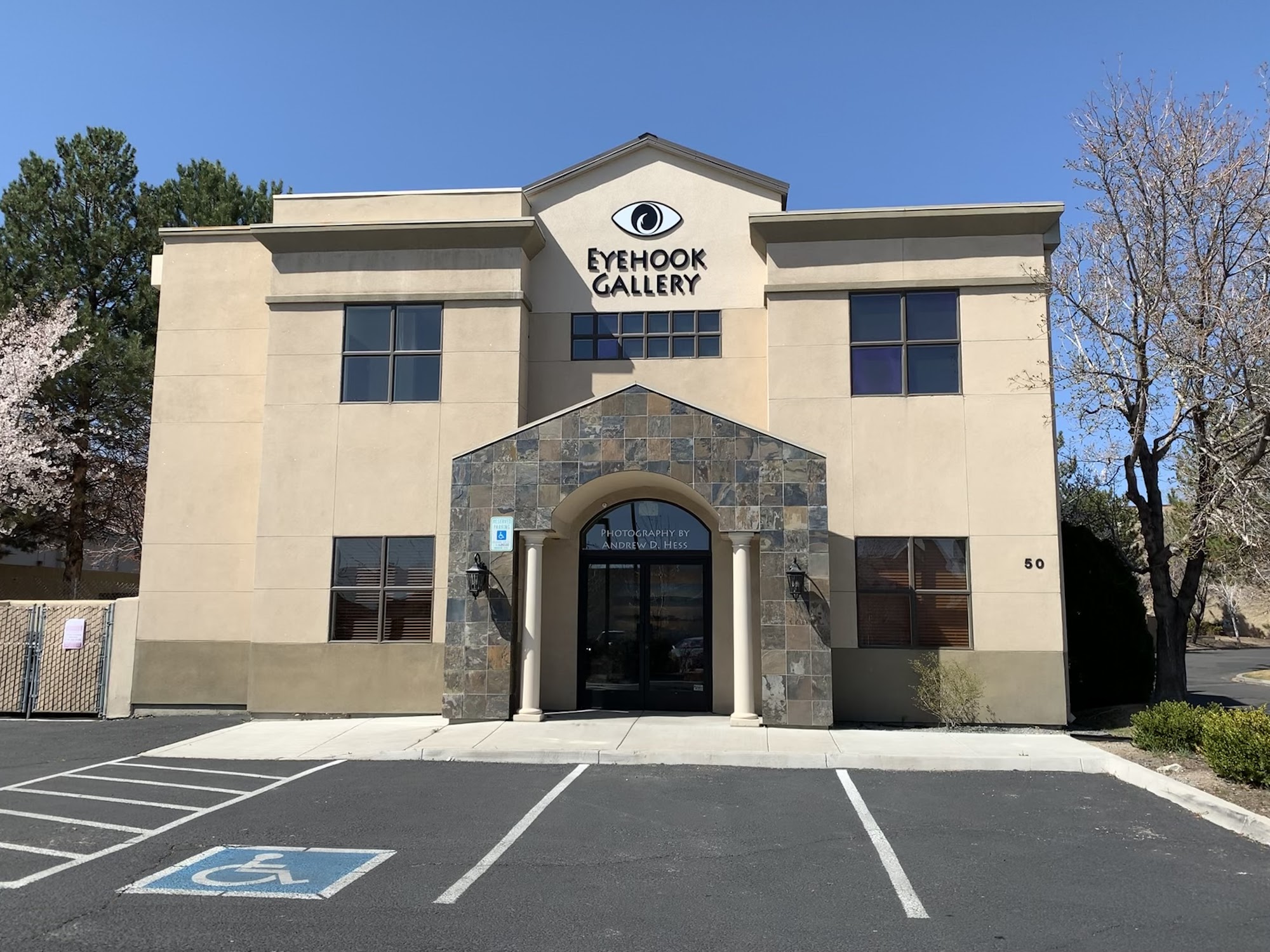 Eyehook Gallery showcases the impressive photography of Andrew D. Hess, featuring landscapes, ruins, structures, petroglyphs, rock formations, and trees. Customers can purchase the displayed pictures or order custom sizes, aspect ratios, and frames. Unframed prints and note cards are also available. Reviewers praise the gallery's gorgeous pictures, good attention from the owner and artist, and the talent of the photographer. The peaceful location displays hundreds of prints across two floors, highlighting the artist's work from Nevada, California, Utah, and more, available to adorn homes and offices.