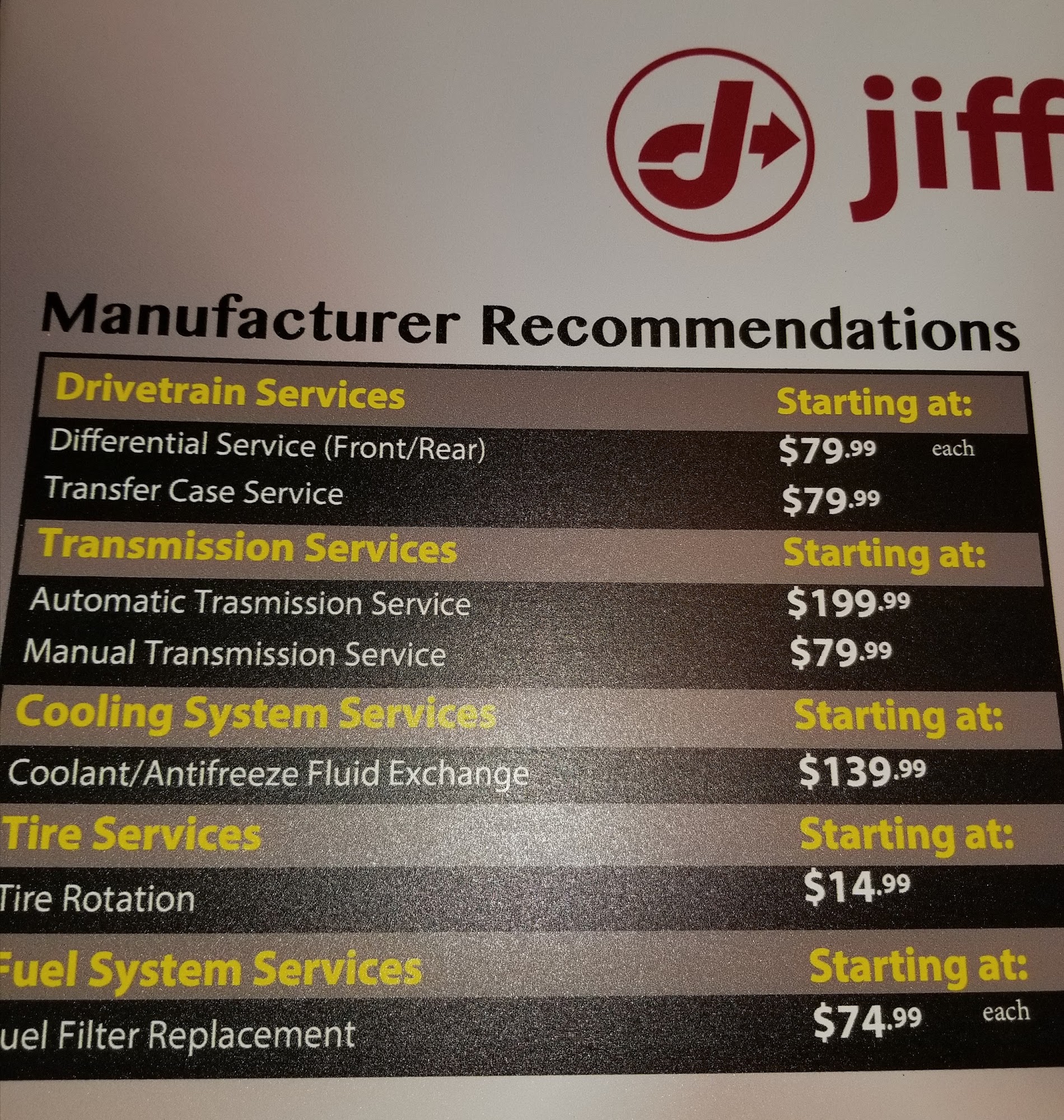 Jiffy Lube is known for providing fast, convenient automotive maintenance services. Customers appreciate the quick and professional service, often receiving oil changes, tire rotations, windshield wiper replacements, and battery checks within 15 minutes. The staff, including employees like Kevin and Nathaniel, are friendly, helpful, and humorous, making the experience enjoyable. Many customers mention that their vehicles are serviced efficiently and that they are treated with priority, especially when time is limited. Jiffy Lube follows manufacturer recommendations for all vehicle makes and models, ensuring proper maintenance. They also keep a record of all services in a nationwide database, providing consistency across locations. The company pioneered the drive-through service bay in 1979, making vehicle maintenance fast and easy. Customers who visit multiple times appreciate the talented team and the reliable, prompt assistance they receive. Overall, Jiffy Lube offers a quick, friendly, and professional experience that keeps customers returning for their vehicle care needs.