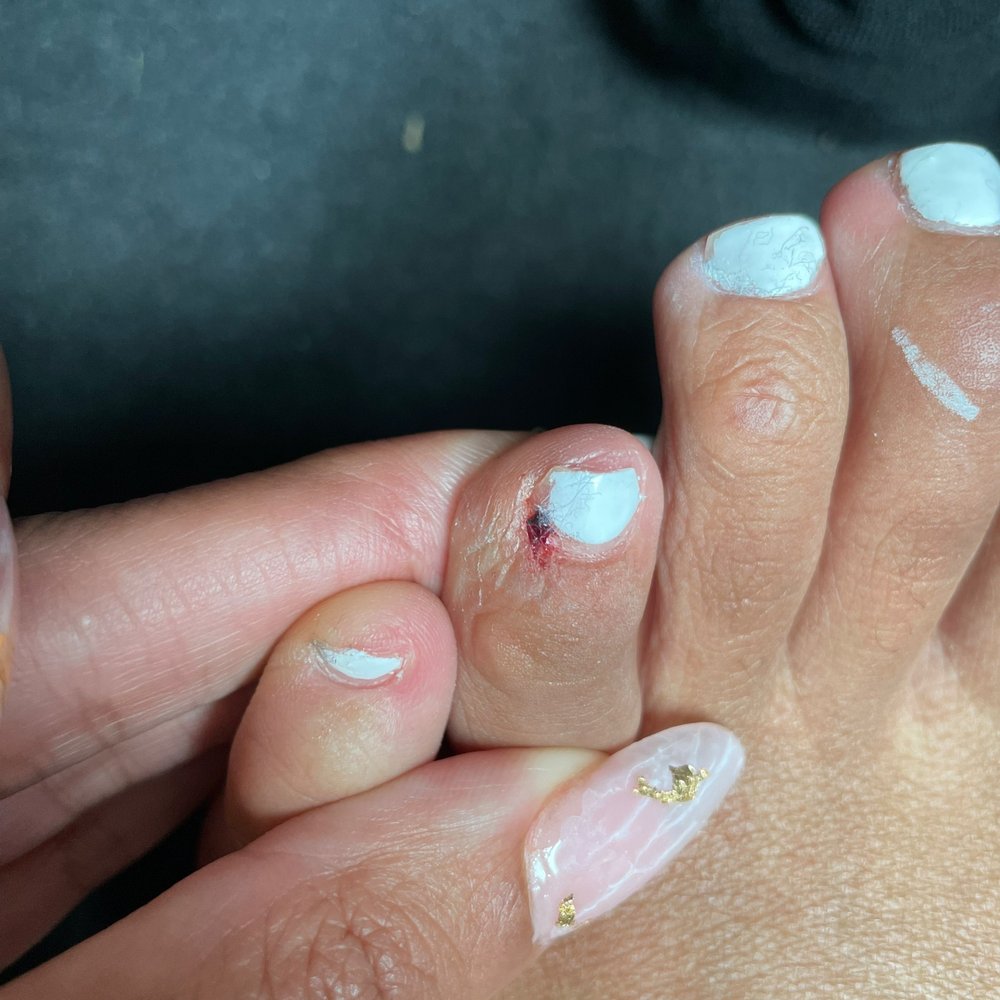 I went in for a pedicure and this is how I came out. The French is sloppy and my toes are severely cut up. I’m not Normally a person who leaves negative reviews but this has to be the worst pedicure I’ve ever gotten