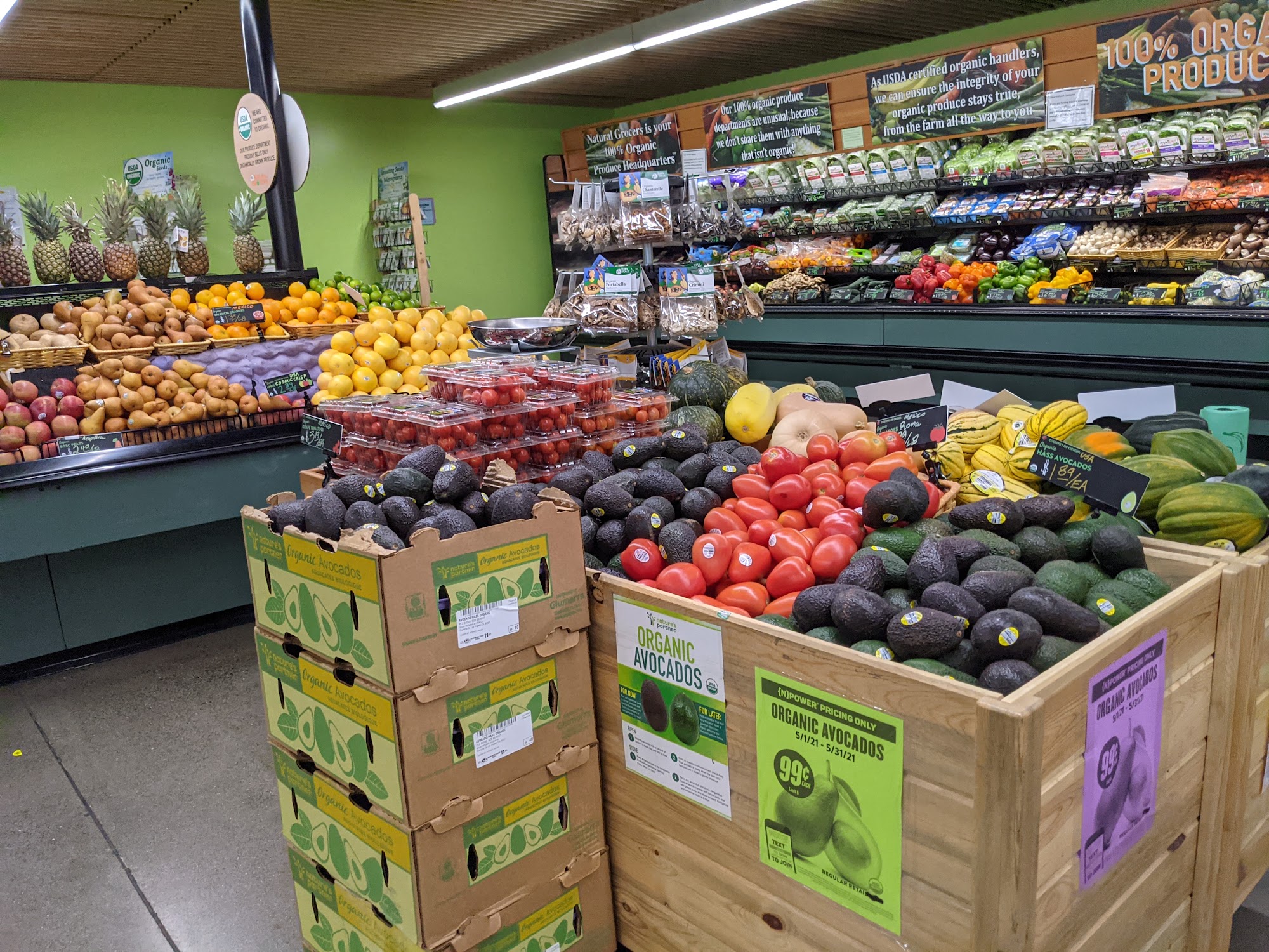 Natural Grocers is a specialty retailer featuring organic and natural groceries, body care, and dietary supplements. It is described as a great and complete store with many items, including hard-to-find vitamins and supplements, gluten-free products, and doctor-recommended supplements. The store offers affordable prices. Shoppers highlight the excellent selection, especially the wall of produce, which is 100% organic. They appreciate the awesome variety of fruits and vegetables, including yams, sweet potatoes, apples, citrus, avocados, and bananas at perfect ripeness. Specific items like Mary's chicken, loose russet potatoes, large aloe vera leaves, tofu, and bulk items like rooibos tea and hazelnuts are noted. The store uses farmers who practice regenerative agriculture. Most staff are very friendly and helpful, providing knowledgeable assistance and personally taking customers to find items. Customers also value the business's environmental efforts, such as encouraging the use of personal shopping bags to save the planet from plastics. Many state it is their only or go-to shop for produce, vitamins, toiletries, and more.