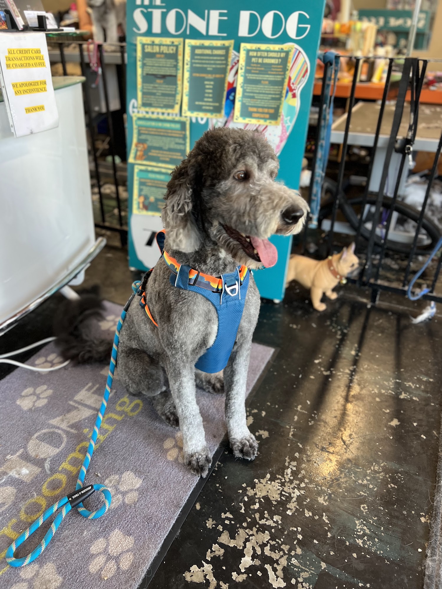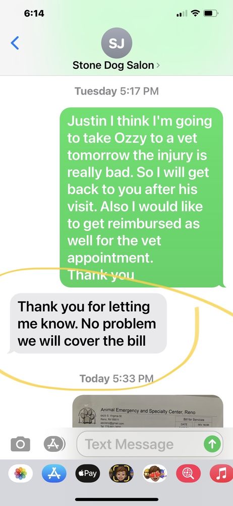 Justin is a great groomer. Nice guy! BeUutiful shop. I am crippled. He is always accommodating with my big standard poodle. Pro service!