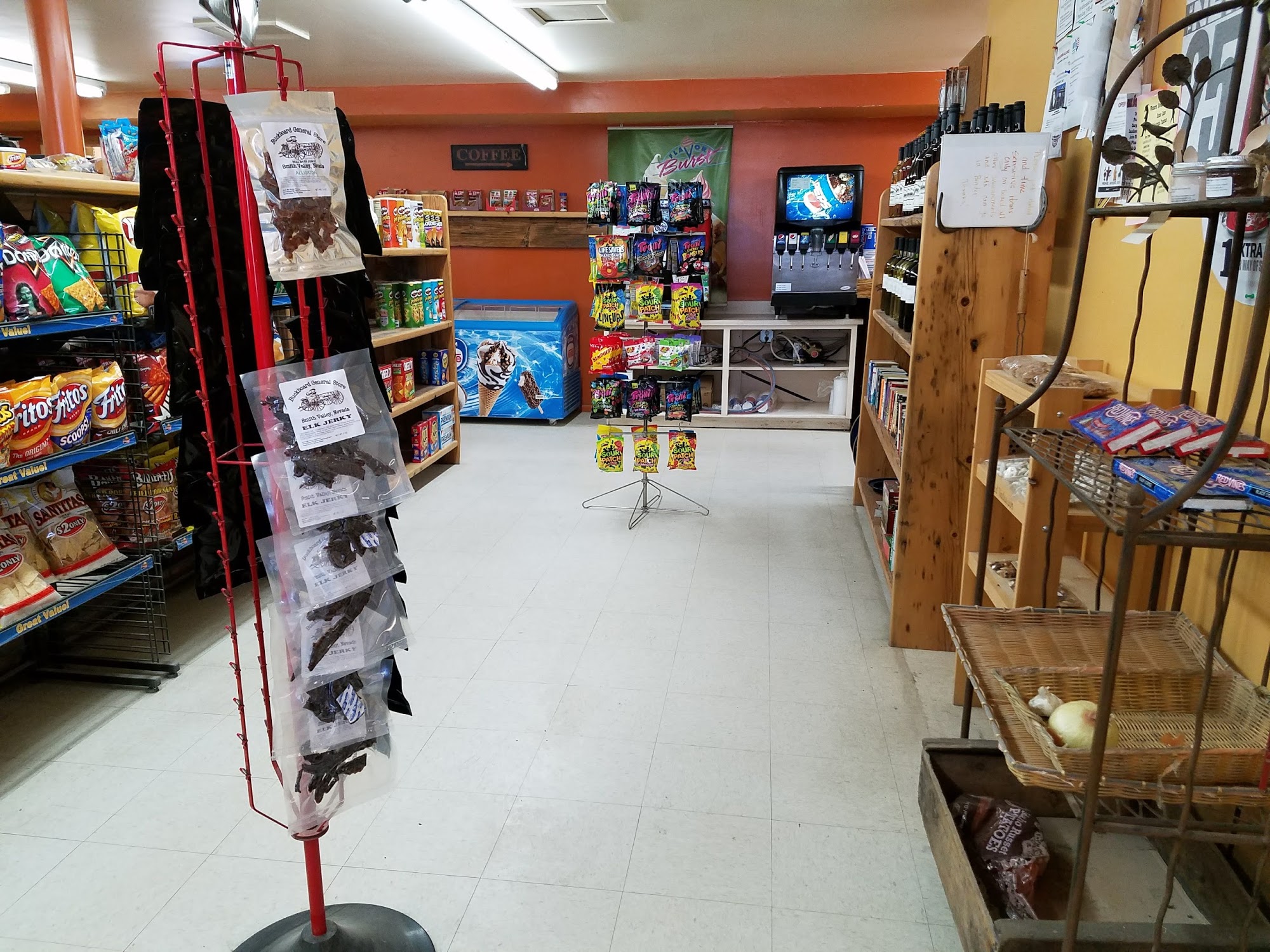 Buckboard General Store is a good local place with great food and friendly staff. It offers the best burgers and fries, including stellar Sidewinder fries with cheese, pulled pork, and jalapeños. There are also jalapeño poppers, mozzarella sticks, and a good selection of sandwiches, drinks, beer, wine, candies, and snacks. It is very friendly to travelers and sometimes has live music. While gas is a bit more than in town, it provides essentials, free Wi-Fi, and is a nice place to stop for a bite.