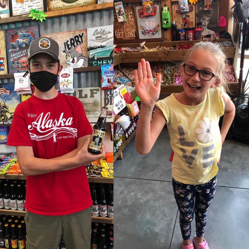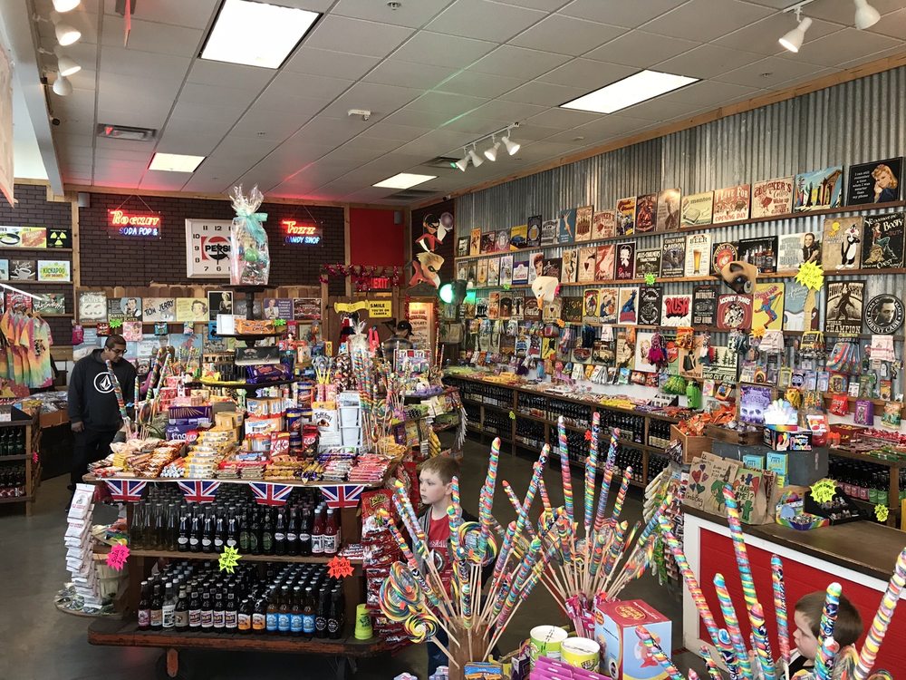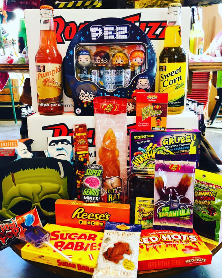 Faygo pop, souix city sassparilla in glass bottles. Mystery bags, all types of candy and neat knick knacks, perfect place for gift shopping or treating the kids to a little sugar splurge.