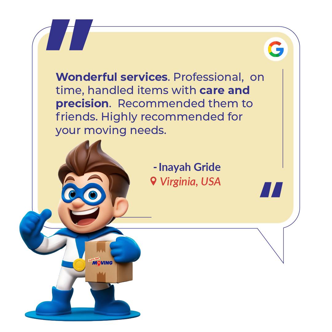 Excellent service from start to finish. The movers were professional, quick, and super helpful. Highly recommend Let’s Get Moving!