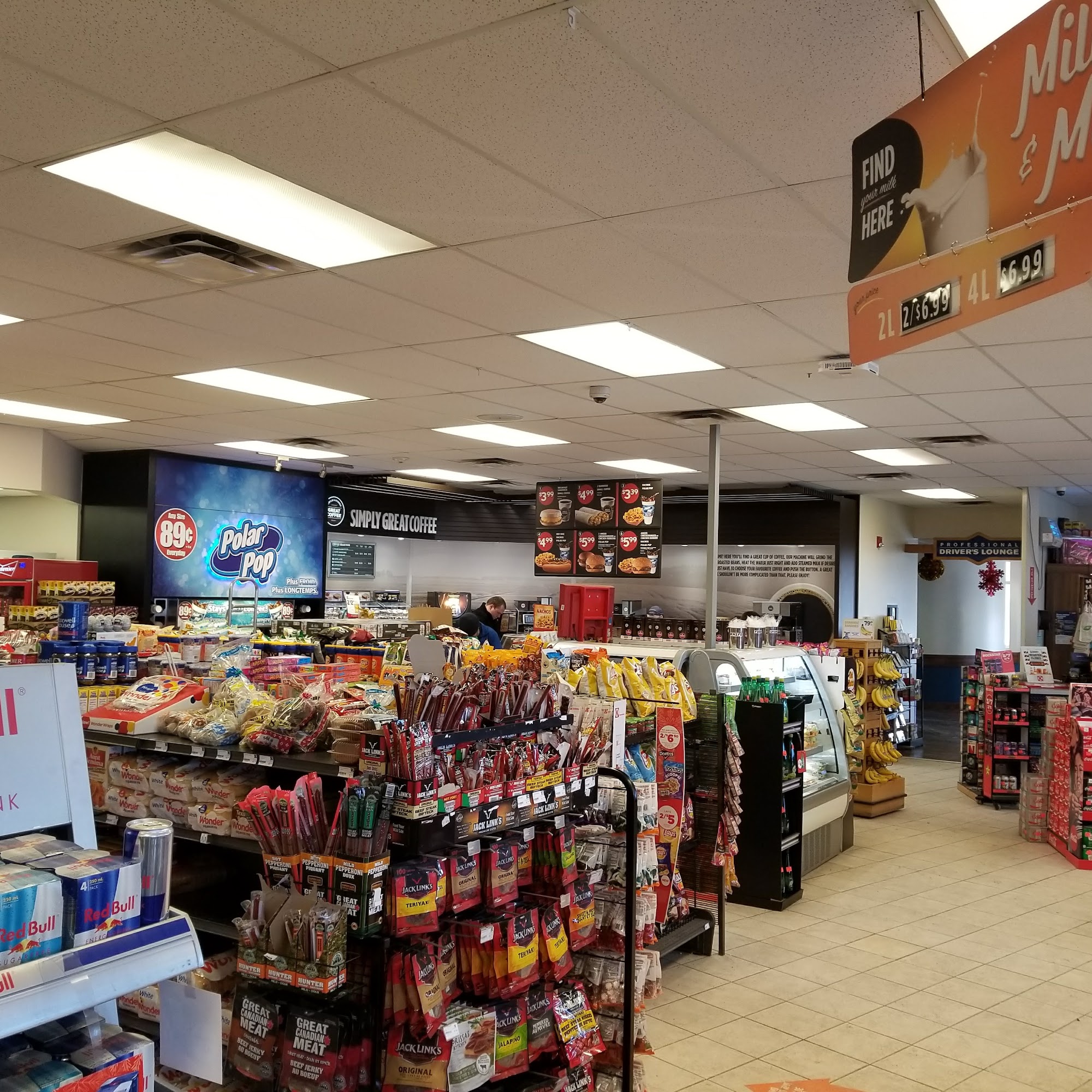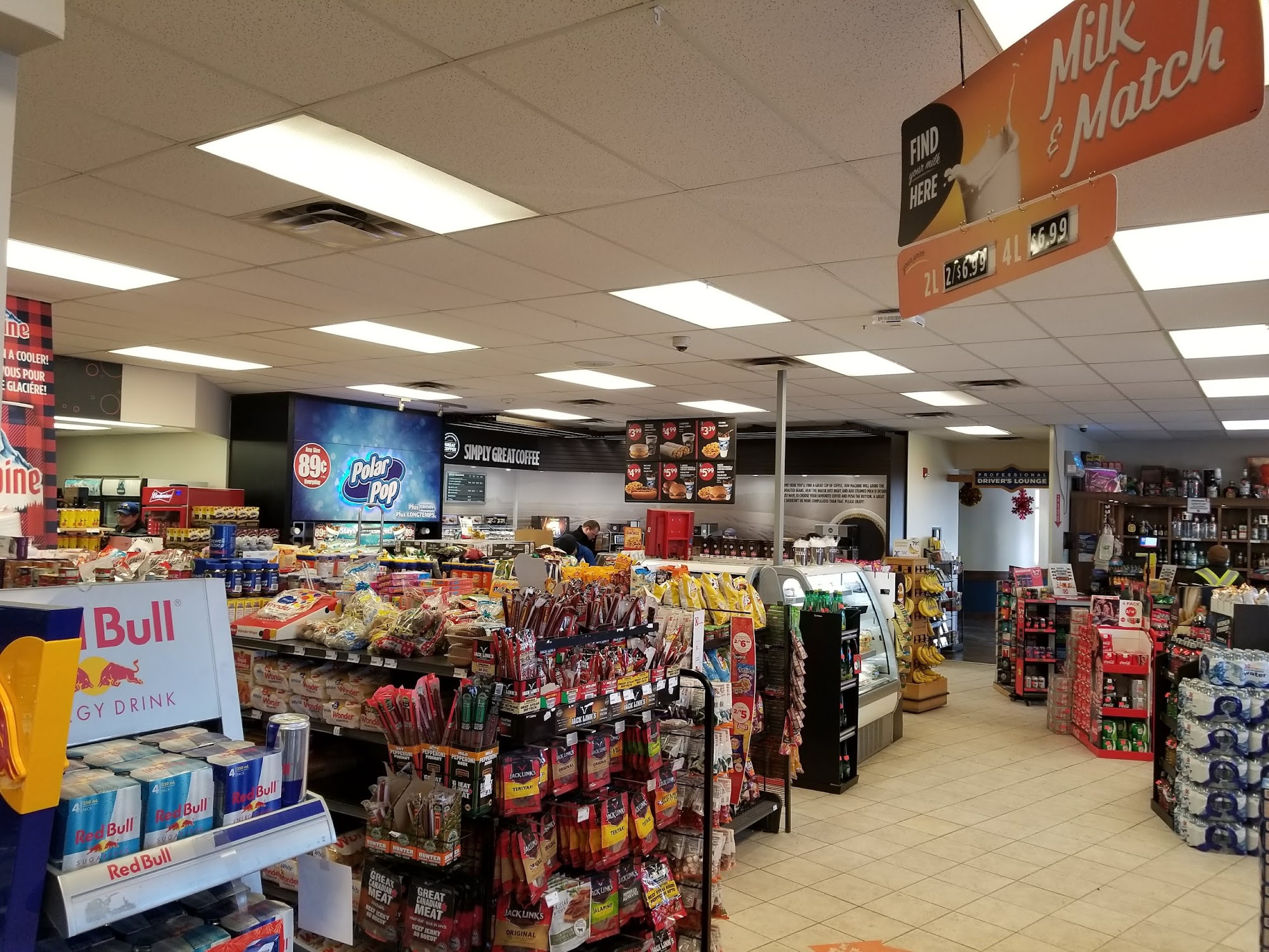 clean washrooms, alcohol until 12 and lots of great slushies, when it's time to eat go on in to the blue canoe and enjoy a homecooked style meal with great portion sizes the big stop is just that a big stop that's well worth it !