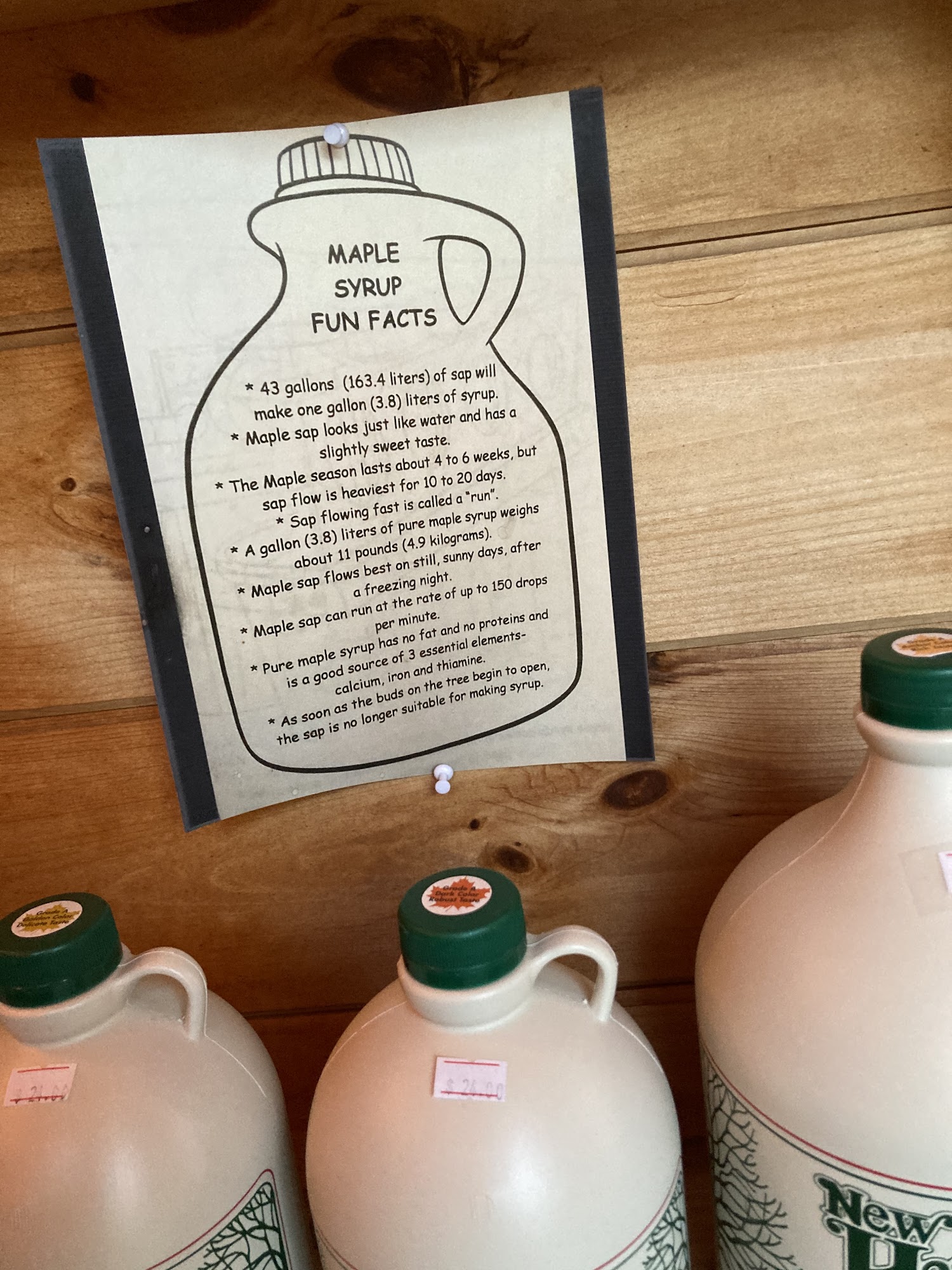 A good selection of sizes for maple syrup. Also have maple candy