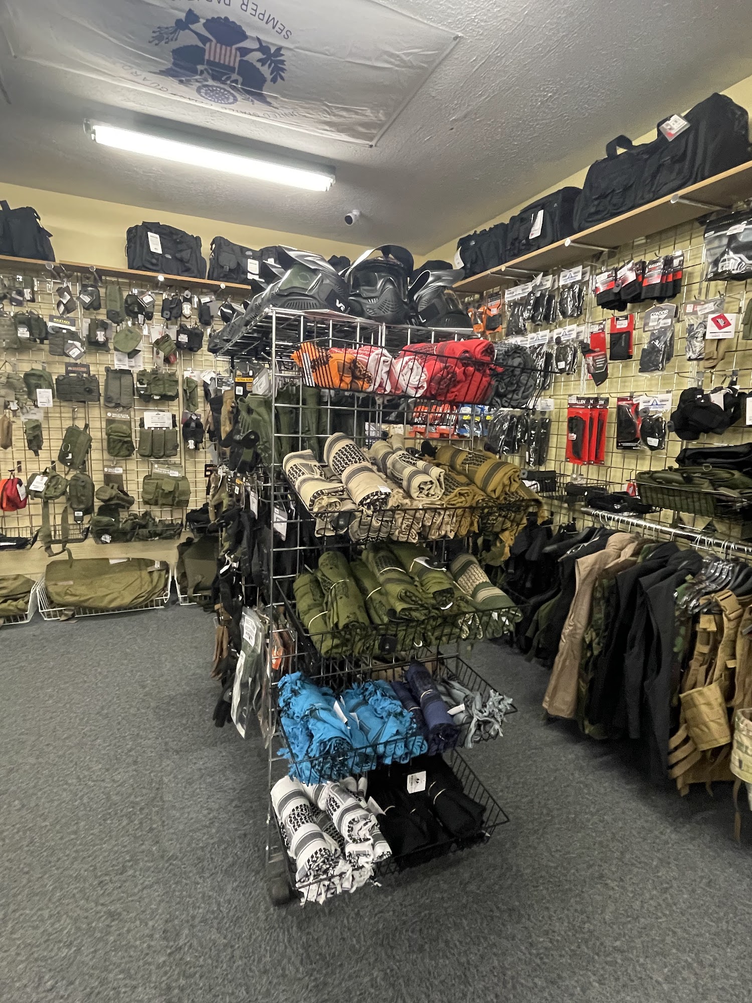 You’ll find a wide variety of items including men's, women’s and children’s clothing, uniform clothing for police/military, collection pieces, headwear, boots, gloves, camping gear and supplies, backpacks, knives, swords, personal protection gear including pepper spray, patriotic gear, flags from all over the world, patches, stickers, military insignia pins, Zippos and many unique novelty items.