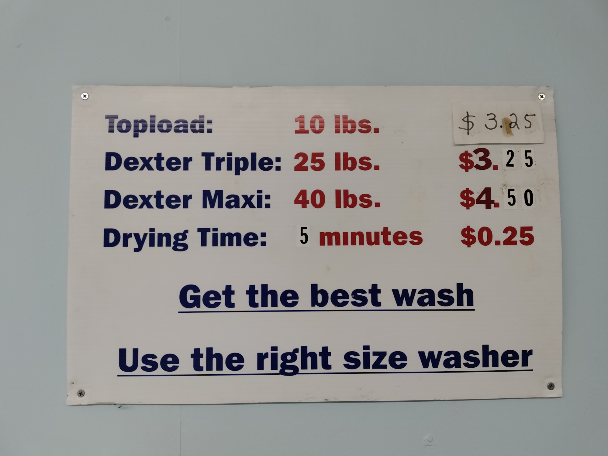 Great, reasonably priced, 24 hour laundromat! Everything works and the missing sock line is great.
